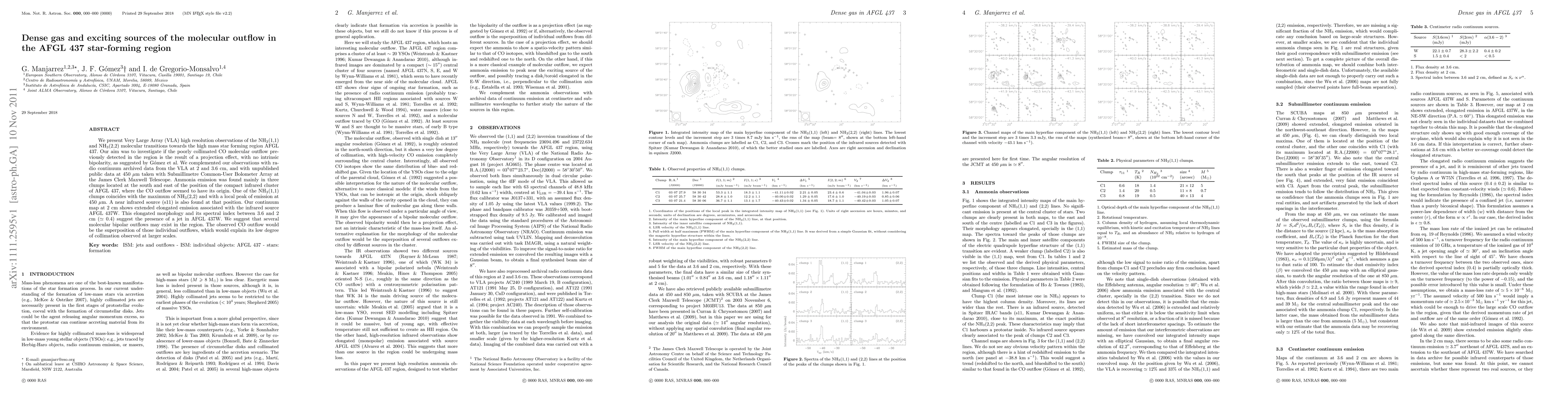 We present Very Large Array (VLA) high resolution observations of the NH3(1,1) and NH3(2,2) molecular transitions towards the high mass star forming region AFGL 437. Our aim was to investigate if the poorly collimated CO molecular outflow previously detected in the region is the result of a projection effect, with no intrinsic bipolarity, as suggested by Gomez et al. We complemented our observations with radio continuum archived data from the VLA at 2 and 3.6 cm, and with unpublished public data at 450 {\mu}m taken with Submillimetre Common-User Bolometer Array at the James Clerk Maxwell Telescope. Ammonia emission was found mainly in three clumps located at the south and east of the position of the compact infrared cluster of AFGL 437, where the CO outflow seemed to have its origin. One of the NH3(1,1) clumps coincides with the maximum of NH3(2,2) and with a local peak of emission at 450 {\mu}m. A near infrared source (s11) is also found at that position. Our continuum map at 2 cm shows extended elongated emission associated with the infrared source AFGL 437W. This elongated morphology and its spectral index between 3.6 and 2 cm (\simeq 0.4) suggest the presence of a jet in AFGL 437W. We suggest that several molecular bipolar outflows may exist in the region. The observed CO outflow would be the superposition of those individual outflows, which would explain its low degree of collimation observed at larger scales.