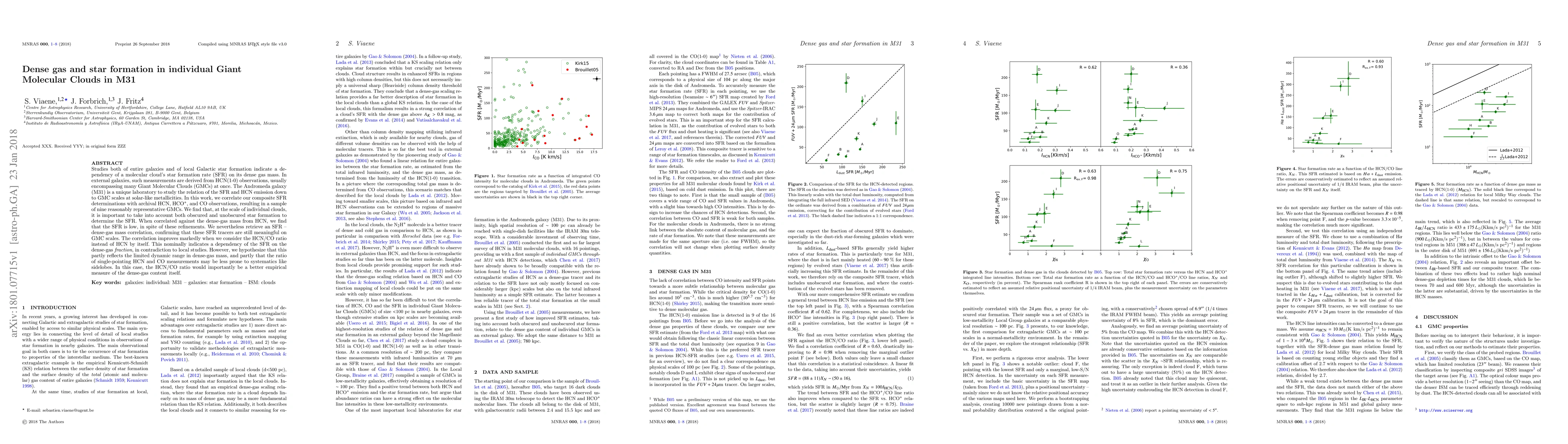 Researchers studied 9 Giant Molecular Clouds in Andromeda galaxy M31 to understand how dense gas affects star formation, finding that a ratio of HCN to CO is a better measure of dense-gas content than using HCN alone.