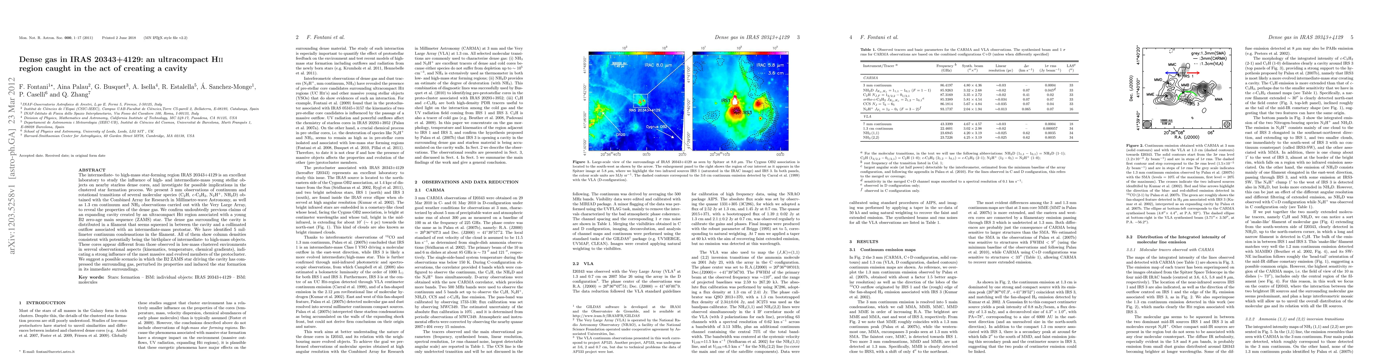 The intermediate- to high-mass star-forming region IRAS 20343+4129 is an excellent laboratory to study the influence of high- and intermediate-mass young stellar objects on nearby starless dense cores, and investigate for possible implications in the clustered star formation process. We present 3 mm observations of continuum and rotational transitions of several molecular species (C2H, c-C3H2, N2H+, NH2D) obtained with the Combined Array for Research in Millimetre-wave Astronomy, as well as 1.3 cm continuum and NH3 observations carried out with the Very Large Array, to reveal the properties of the dense gas. We confirm undoubtedly previous claims of an expanding cavity created by an ultracompact HII region associated with a young B2 zero-age main sequence (ZAMS) star. The dense gas surrounding the cavity is distributed in a filament that seems squeezed in between the cavity and a collimated outflow associated with an intermediate-mass protostar. We have identified 5 millimeter continuum condensations in the filament. All of them show column densities consistent with potentially being the birthplace of intermediate- to high-mass objects. These cores appear different from those observed in low-mass clustered environments in sereval observational aspects (kinematics, temperature, chemical gradients), indicating a strong influence of the most massive and evolved members of the protocluster. We suggest a possible scenario in which the B2 ZAMS star driving the cavity has compressed the surrounding gas, perturbed its properties and induced the star formation in its immediate surroundings.