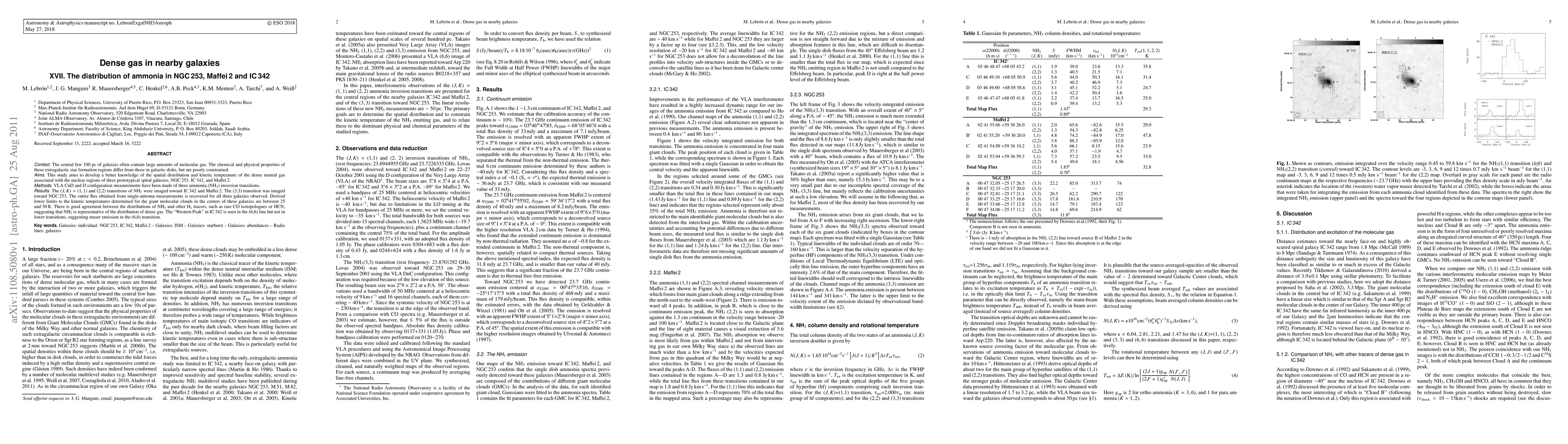 This study uses VLA observations to map the distribution and kinetic temperature of ammonia (NH3) in the central regions of three spiral galaxies: NGC253, IC342, and Maffei2. The findings indicate that NH3 correlates well with other dense gas tracers, suggesting it represents the dense gas distribution, and reveal kinetic temperatures of 25-50K in the central molecular clouds.