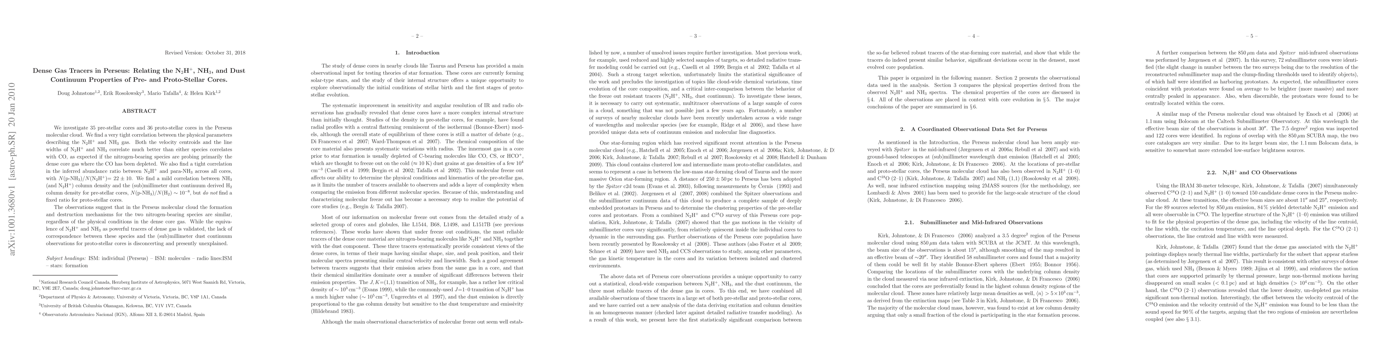 We investigate 35 pre-stellar cores and 36 proto-stellar cores in the Perseus molecular cloud. We find a very tight correlation between the physical parameters describing the N2H+ and NH3 gas. Both the velocity centroids and the line widths of N2H+ and NH3 correlate much better than either species correlates with CO, as expected if the nitrogen-bearing species are probing primarily the dense core gas where the CO has been depleted. We also find a tight correlation in the inferred abundance ratio between N2H+ and para-NH3 across all cores, with N(p-NH3)/N(N2H+)= 22 +/- 10. We find a mild correlation between NH3 (and N2H+) column density and the (sub)millimeter dust continuum derived H2 column density for pre-stellar cores, N(p-NH3)/N(H2) ~ 10e-8, but do not find a fixed ratio for proto-stellar cores. The observations suggest that in the Perseus molecular cloud the formation and destruction mechanisms for the two nitrogen-bearing species are similar, regardless of the physical conditions in the dense core gas. While the equivalence of N2H+ and NH3 as powerful tracers of dense gas is validated, the lack of correspondence between these species and the (sub)millimeter dust continuum observations for proto-stellar cores is disconcerting and presently unexplained.