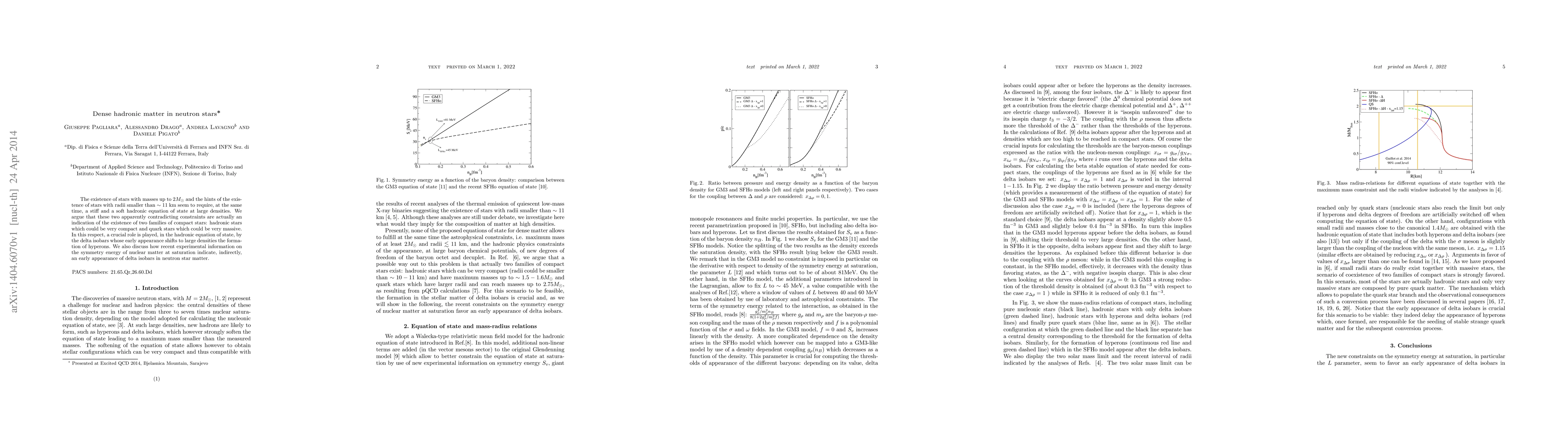 This paper argues that neutron stars with high masses and small radii suggest the existence of two types of compact stars: dense hadronic stars and quark stars. The early appearance of delta isobars in neutron star matter, influenced by the symmetry energy, plays a crucial role in determining the hadronic equation of state.