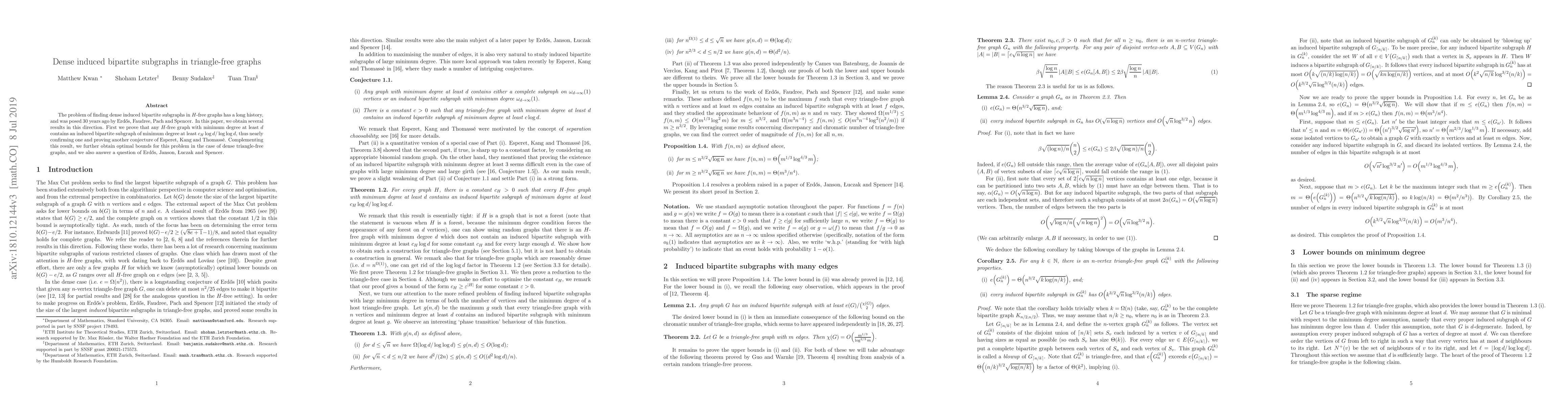 This paper addresses the longstanding problem of finding dense induced bipartite subgraphs in triangle-free graphs, confirming conjectures on minimum degree requirements and providing optimal bounds for dense triangle-free graphs, thus answering a question posed by Erdős et al.
