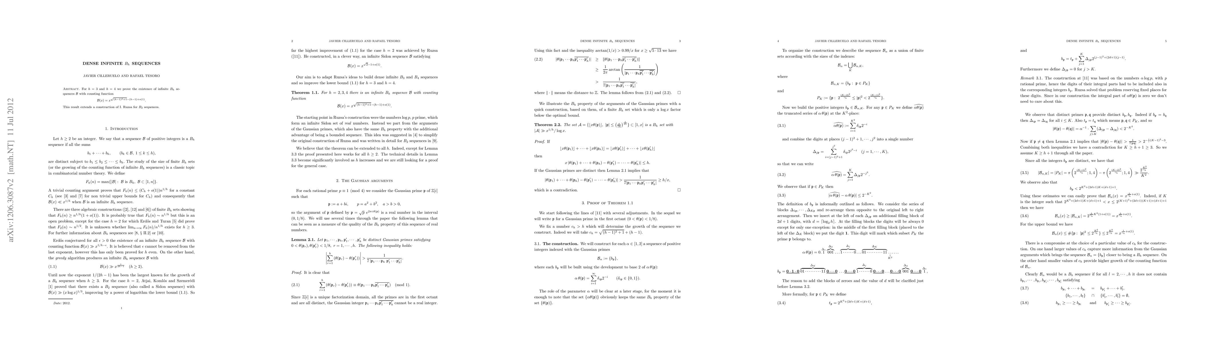 For $h=3$ and $h=4$ we prove the existence of infinite $B_h$ sequences $\B$ with counting function $$\mathcal{B}(x)= x^{\sqrt{(h-1)^2+1}-(h-1) + o(1)}.$$ This result extends a construction of I. Ruzsa for $B_2$ sequences.