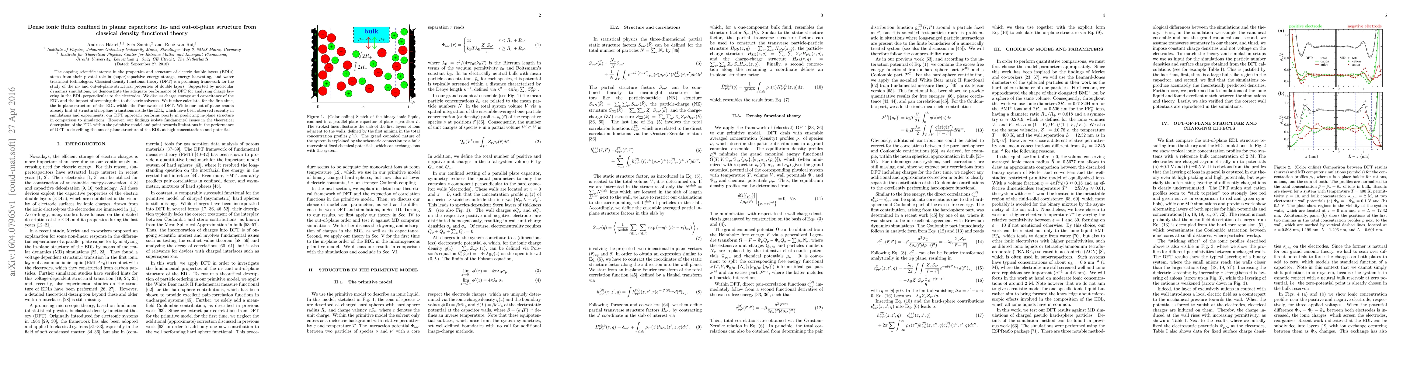 This paper uses classical density functional theory to study the in- and out-of-plane structural properties of electric double layers (EDLs) in planar capacitors, highlighting the method's strengths and limitations in predicting EDL behavior, particularly in charge layering and capacitance. While out-of-plane analysis aligns well with experimental observations, the in-plane structure predictions fall short compared to molecular dynamics simulations.