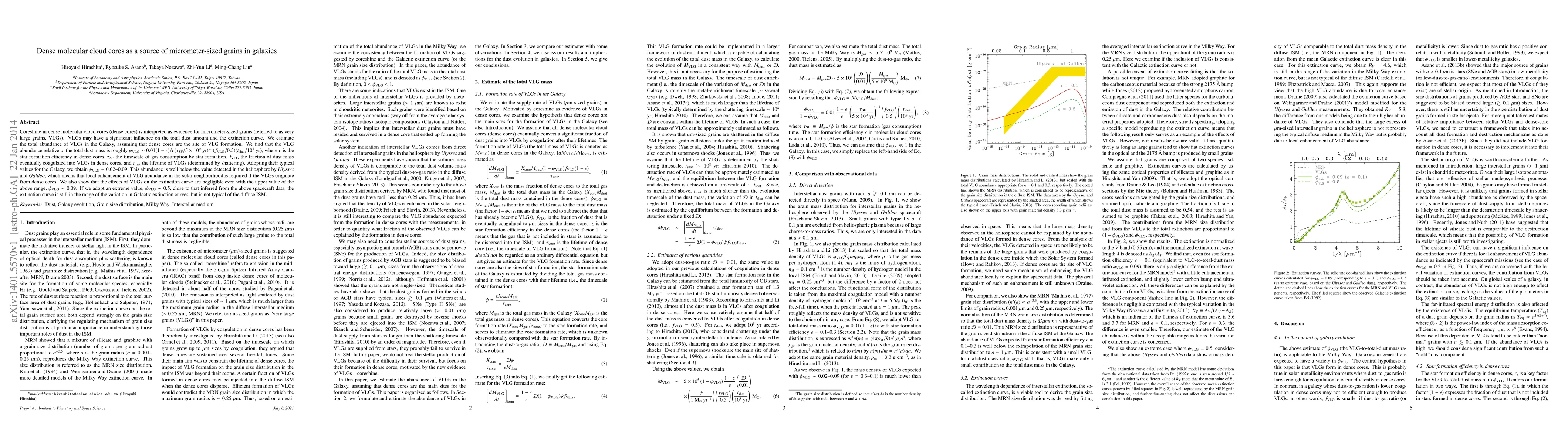 Dense molecular cloud cores may produce micrometer-sized grains that affect galaxy dust abundance and extinction curves, with estimated abundances of 0.02-0.09 times the total dust mass.