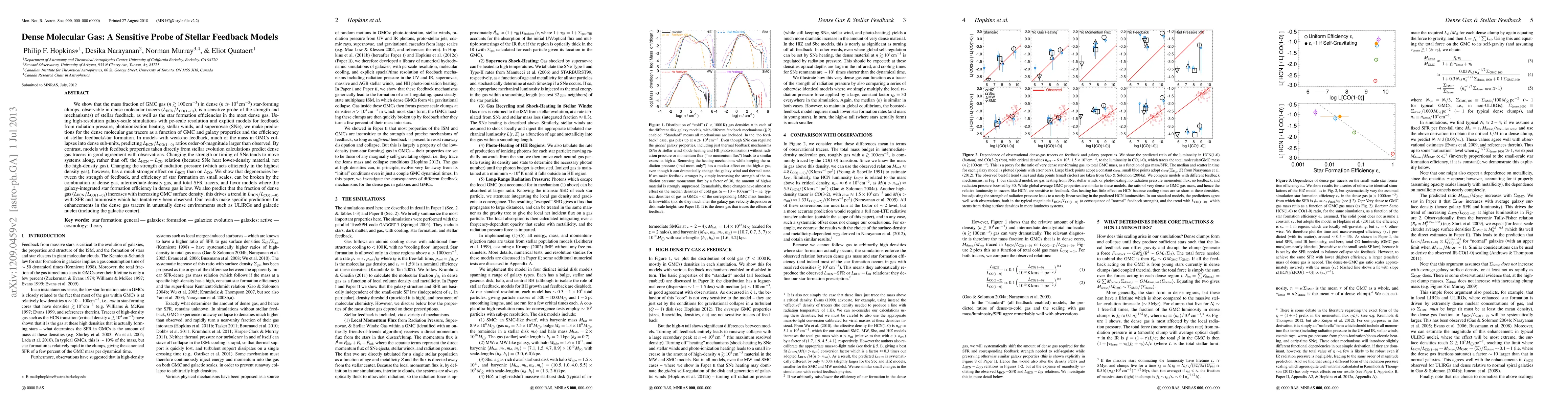 This paper demonstrates that the mass fraction of dense molecular gas in star-forming clumps is a sensitive indicator of stellar feedback mechanisms, using high-resolution simulations. Models with strong feedback align well with observations, while weak feedback leads to much higher dense gas tracer ratios than seen in reality.