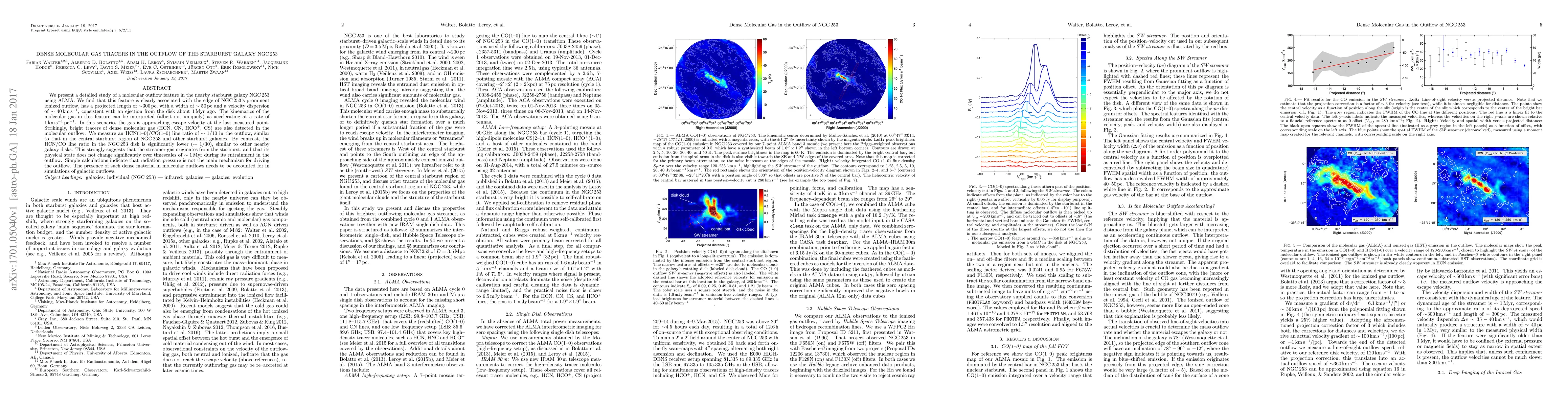This study using ALMA reveals a dense molecular gas outflow in NGC 253, tracing the edge of its ionized outflow and showing signs of acceleration towards escape velocity. Dense molecular gas tracers like HCN, CN, HCO+, and CS are found in the outflow, suggesting the gas originates from the central starburst region without significant change in its physical state.