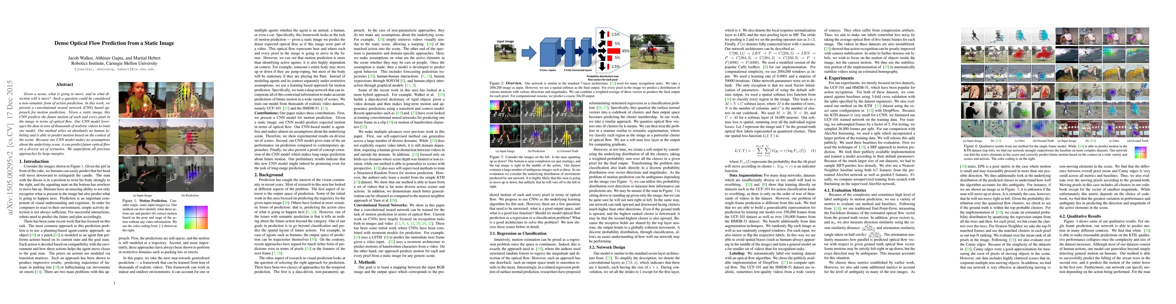 Given a scene, what is going to move, and in what direction will it move? Such a question could be considered a non-semantic form of action prediction. In this work, we present a convolutional neural network (CNN) based approach for motion prediction. Given a static image, this CNN predicts the future motion of each and every pixel in the image in terms of optical flow. Our CNN model leverages the data in tens of thousands of realistic videos to train our model. Our method relies on absolutely no human labeling and is able to predict motion based on the context of the scene. Because our CNN model makes no assumptions about the underlying scene, it can predict future optical flow on a diverse set of scenarios. We outperform all previous approaches by large margins.