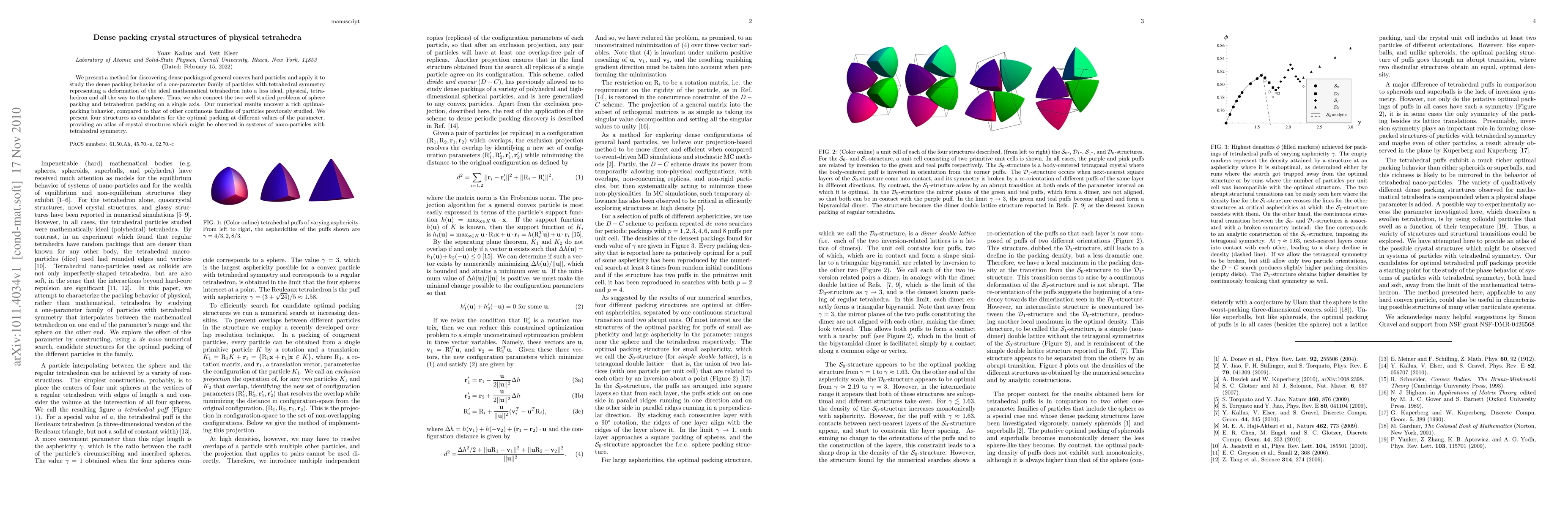 Researchers develop a method to study dense packing of tetrahedral particles, discovering four optimal crystal structures that differ in their degree of deformation from the ideal mathematical tetrahedron.