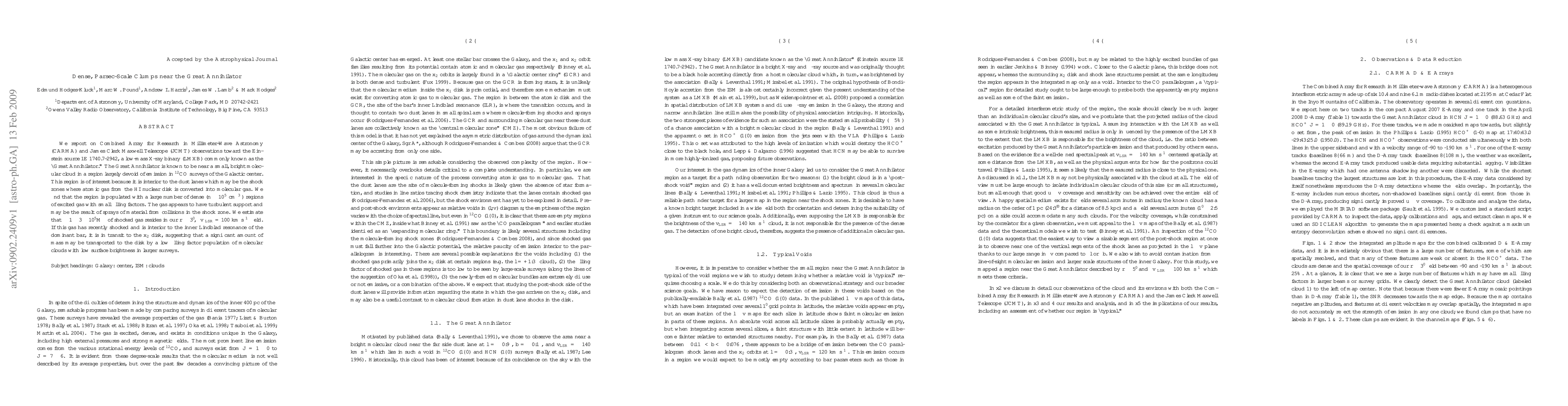 We report on Combined Array for Research in Millimeter-Wave Astronomy (CARMA) and James Clerk Maxwell Telescope (JCMT) observations toward the Einstein source 1E 1740.7-2942, a LMXB commonly known as the "Great Annihilator." The Great Annihilator is known to be near a small, bright molecular cloud on the sky in a region largely devoid of emission in 12-CO surveys of the Galactic Center. The region is of interest because it is interior to the dust lanes which may be the shock zones where atomic gas from HI nuclear disk is converted into molecular gas. We find that the region is populated with a number of dense (n ~ 10^5 cm^-3) regions of excited gas with small filling factors, and estimate that up to 1-3 x 10^5 solar masses of gas can be seen in our maps. The detection suggests that a significant amount of mass is transported from the shock zones to the GC star-forming regions in the form of small, dense bundles.