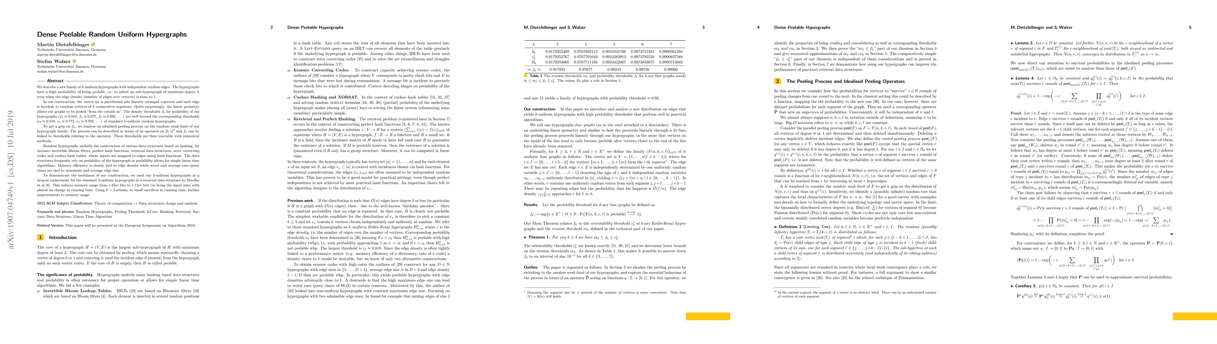 This paper introduces a new family of dense, peelable $k$-uniform hypergraphs with random edges that exhibit peelability at significantly higher densities than standard random hypergraphs. The authors demonstrate their practical utility by reducing memory usage in a retrieval data structure while maintaining performance.