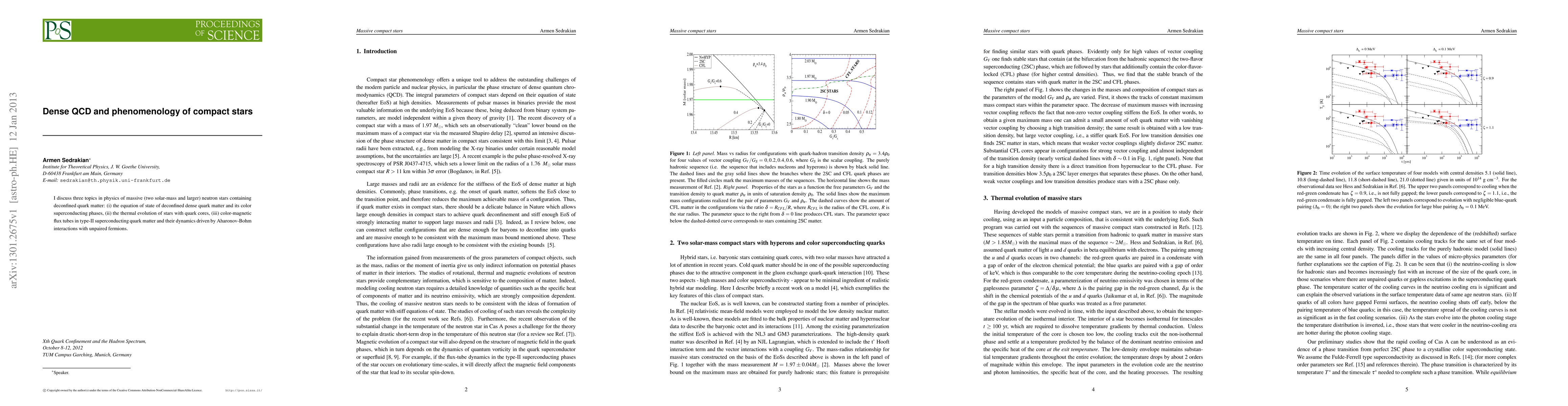This paper explores the physics of massive neutron stars with deconfined quark matter, focusing on the equation of state of dense quark matter, thermal evolution of stars with quark cores, and the dynamics of color-magnetic flux tubes influenced by Aharonov-Bohm interactions.