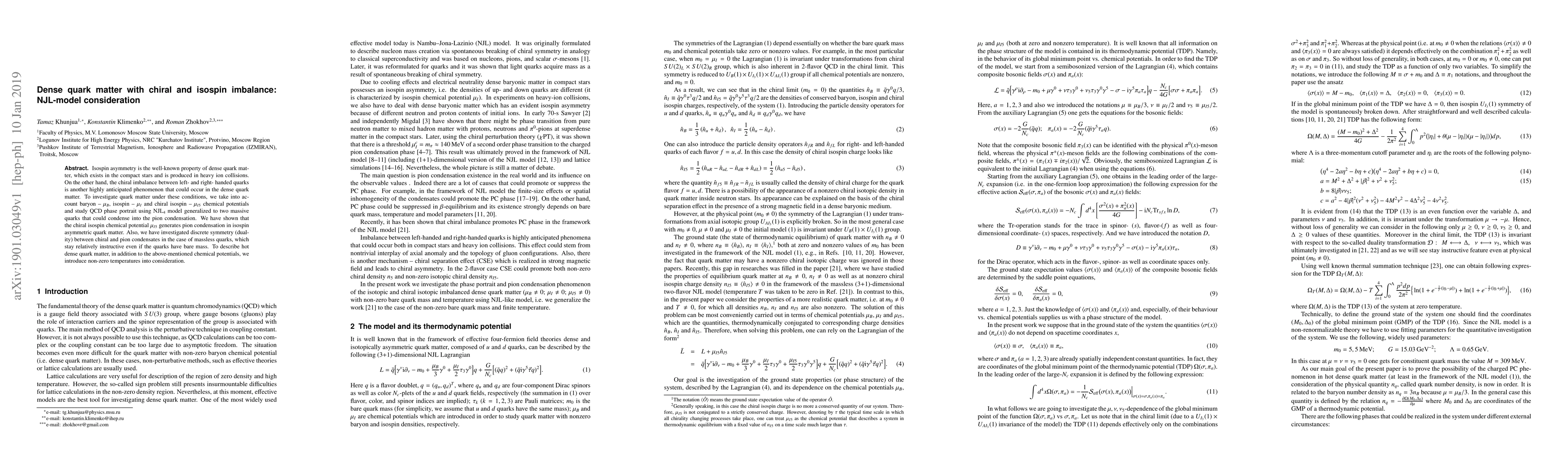 Isospin asymmetry is the well-known property of dense quark matter, which exists in the compact stars and is produced in heavy ion collisions. On the other hand, the chiral imbalance between left- and right-handed quarks is another highly anticipated phenomenon that could occur in the dense quark matter. To investigate quark matter under these conditions, we take into account baryon -- $\mu_B$, isospin -- $\mu_I$ and chiral isospin -- $\mu_{I5}$ chemical potentials and study QCD phase portrait using NJL$_4$ model generalized to two massive quarks that could condense into the pion condensation. We have shown that the chiral isospin chemical potential $\mu_{I5}$ generates pion condensation in isospin asymmetric quark matter. Also, we have investigated discrete symmetry (duality) between chiral and pion condensates in the case of massless quarks, which stay relatively instructive even if the quarks have bare mass. To describe hot dense quark matter, in addition to the above-mentioned chemical potentials, we introduce non-zero temperatures into consideration.