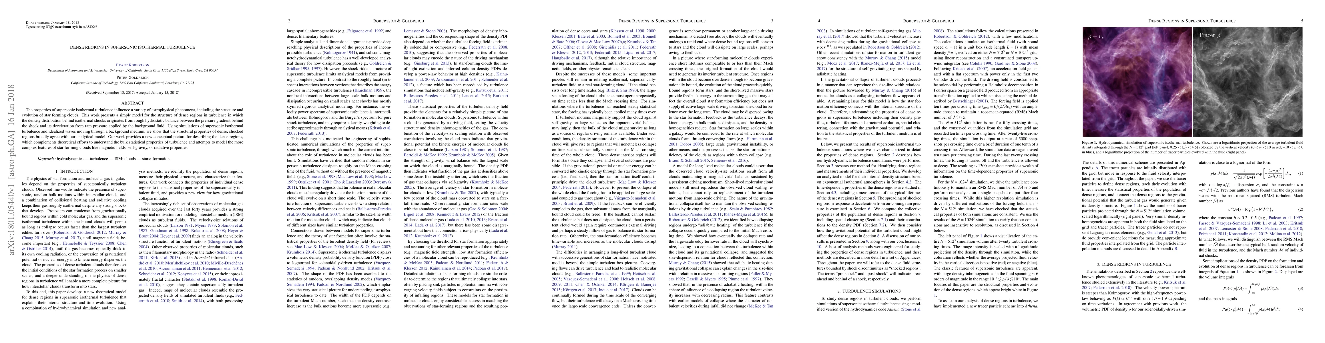 This paper develops a model to describe dense regions in supersonic isothermal turbulence, showing that the structural properties of these regions align with a hydrostatic balance between shock pressure gradients and background fluid ram pressure. The findings offer a new conceptual framework for understanding dense regions in turbulence, aiding in the broader study of astrophysical phenomena like star formation.
