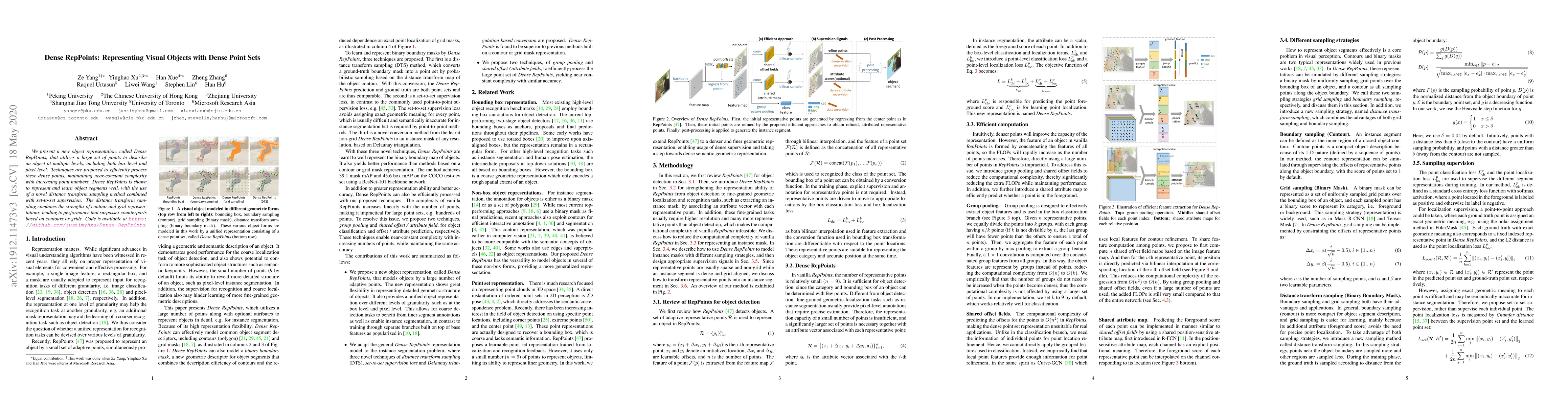 This paper introduces Dense RepPoints, a novel object representation using dense point sets for multi-level object description, achieving efficient processing and superior performance through a distance transform sampling method. The approach outperforms contour and grid-based methods, with code available for reproducibility.