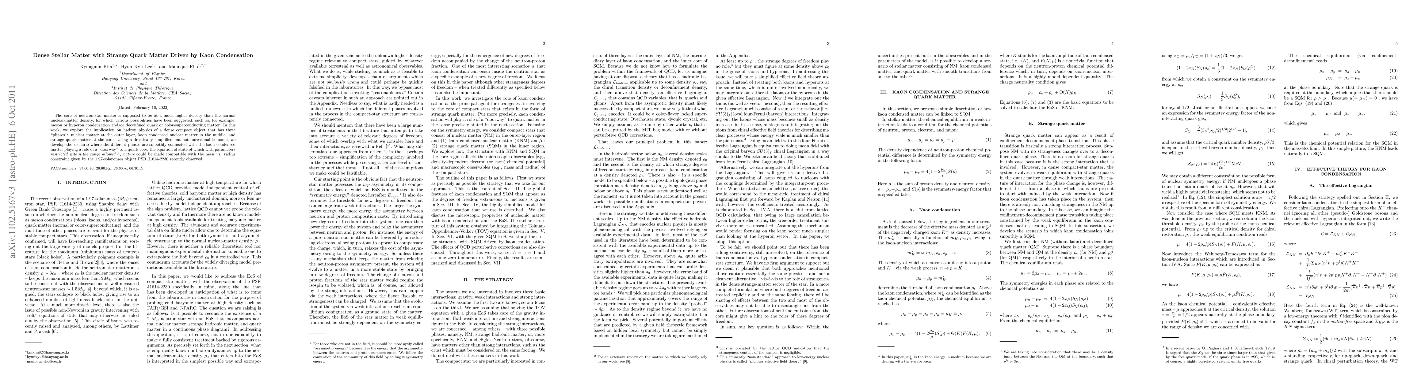 The core of neutron-star matter is supposed to be at a much higher density than the normal nuclear matter density for which various possibilities have been suggested such as, for example, meson or hyperon condensation and/or deconfined quark or color-superconducting matter. In this work, we explore the implication on hadron physics of a dense compact object that has three "phases", nuclear matter at the outer layer, kaon condensed nuclear matter in the middle and strange quark matter at the core. Using a drastically simplified but not unreasonable model, we develop the scenario where the different phases are smoothly connected with the kaon condensed matter playing a role of "doorway" to a quark core, the equation of state (EoS) of which with parameters restricted within the range allowed by nature could be made compatible with the mass vs. radius constraint given by the 1.97-solar mass object PSR J1614-2230 recently observed.