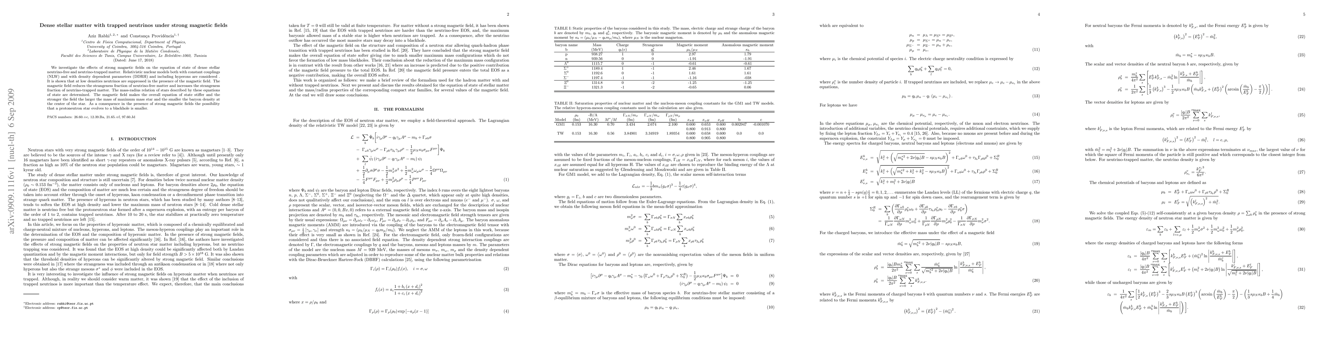 This paper examines the impact of strong magnetic fields on dense stellar matter, both neutrino-free and neutrino-trapped, using relativistic nuclear models. It finds that magnetic fields increase the strangeness fraction in neutrino-trapped matter and reduce maximum star mass, potentially delaying the evolution of a protoneutron star into a black hole.
