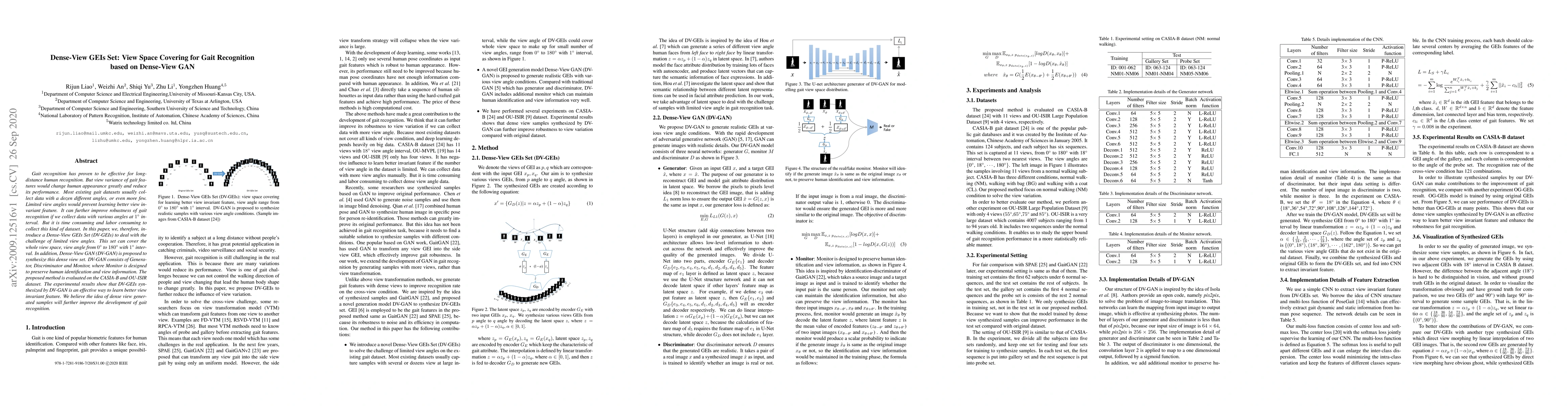 This paper introduces a Dense-View Gait Energy Image Set (DV-GEIs) to address the challenge of limited view angles in gait recognition datasets. To generate a comprehensive view space, the authors propose a Dense-View GAN (DV-GAN) that synthesizes gait images at 1-degree intervals, enhancing view invariance and improving gait recognition robustness.