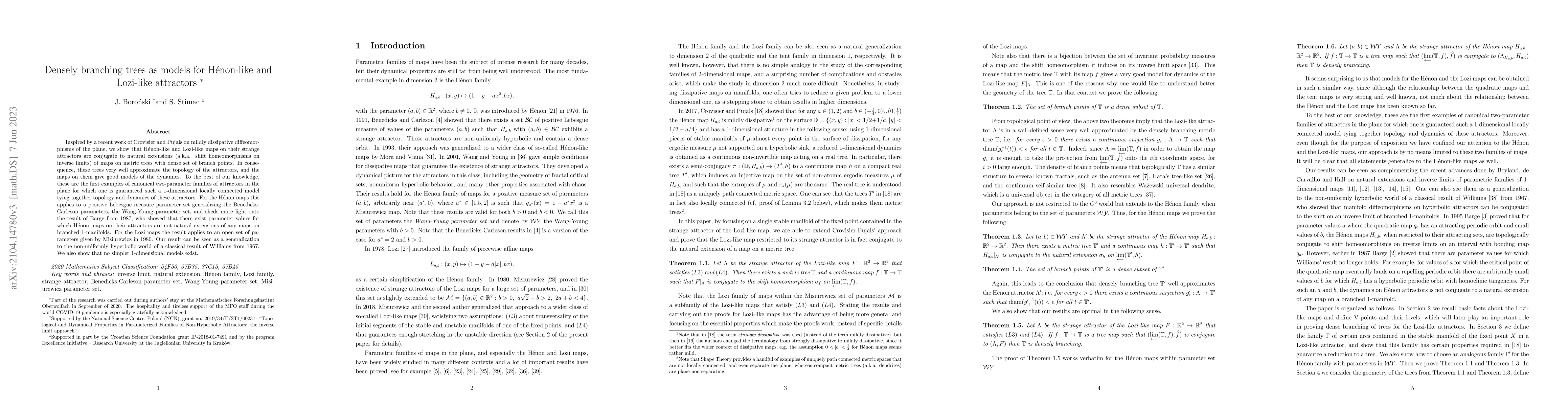 This paper demonstrates that H\'enon-like and Lozi-like maps on their strange attractors can be modeled by densely branching trees with dense sets of branch points, which serve as good approximations for the attractors' topology and dynamics. It reveals the first canonical two-parameter families of attractors in the plane for which such 1-dimensional locally connected models are guaranteed.