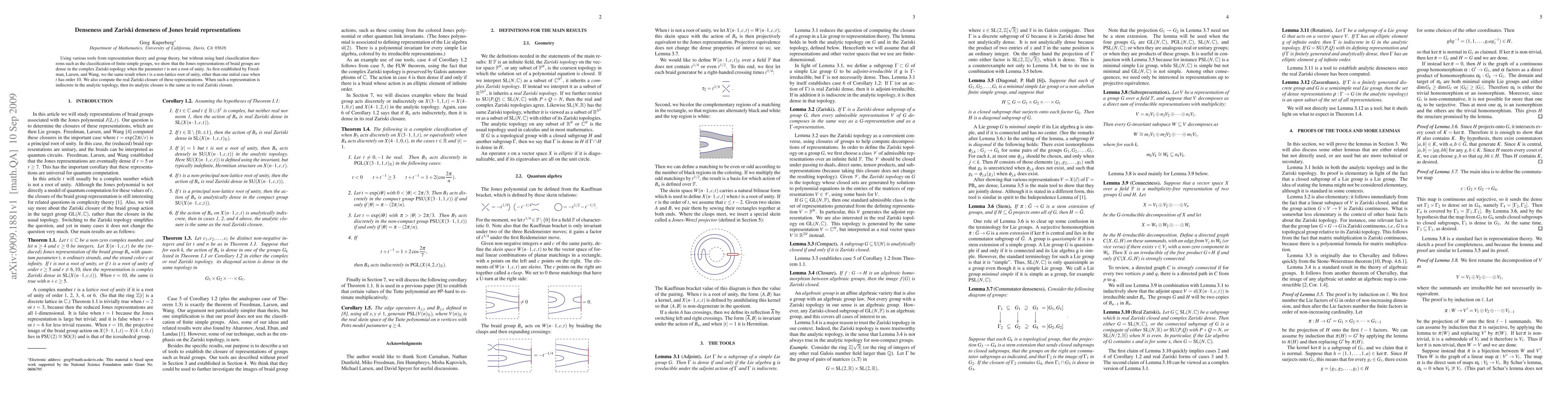This paper demonstrates that Jones representations of braid groups are dense in the complex Zariski topology when the parameter $t$ is not a root of unity, using representation theory and group theory without relying on classification theorems like that of finite simple groups. It also addresses the case when $t$ is a non-lattice root of unity, with a specific exception when $t$ has order 10.