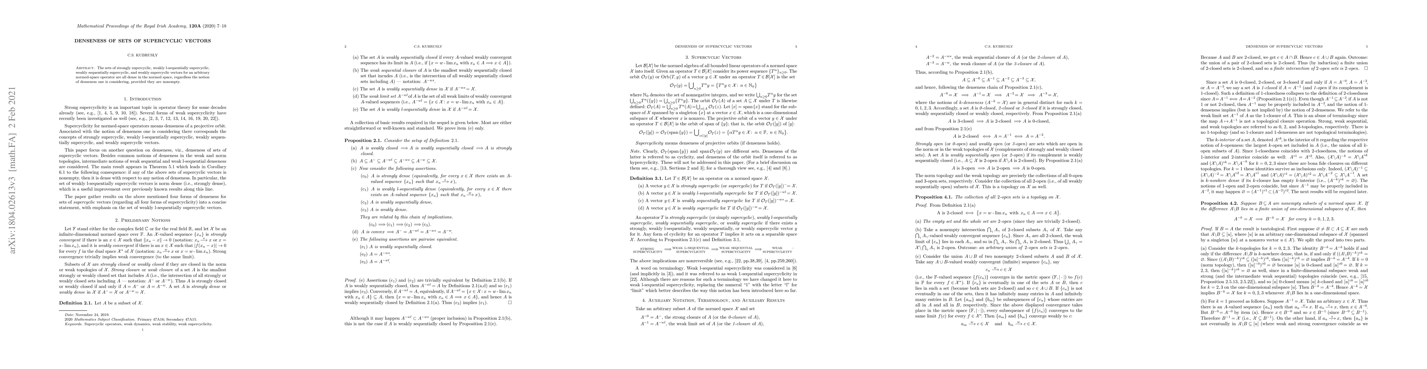 The sets of strongly supercyclic, weakly l-sequentially supercyclic, weakly sequentially supercyclic, and weakly supercyclic vectors for an arbitrary normed-space operator are all dense in the normed space, regardless the notion of denseness one is considering, provided they are nonempty.