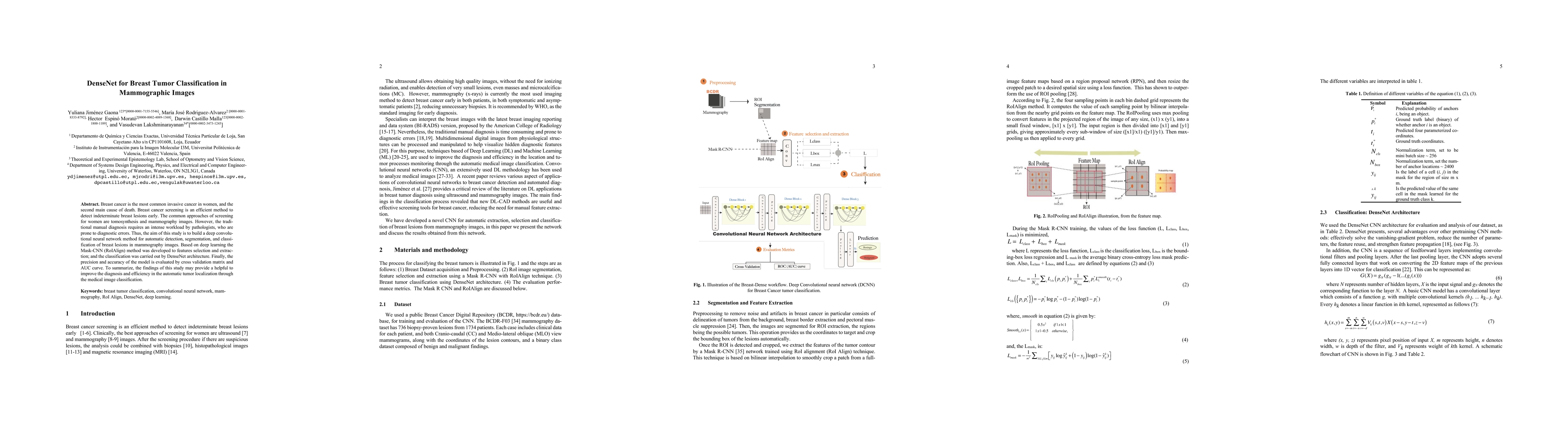 This study proposes a deep convolutional neural network using DenseNet for automatic detection, segmentation, and classification of breast lesions in mammographic images. The method aims to reduce the workload and potential errors in manual diagnosis by pathologists, demonstrating promising precision and accuracy through cross-validation and AUC evaluation.
