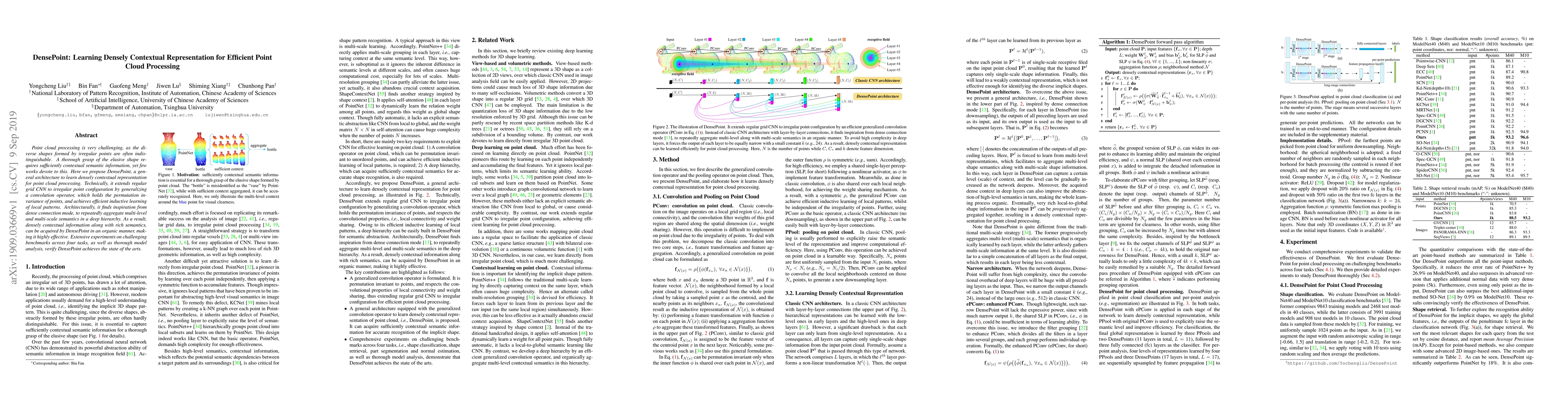 DensePoint proposes a general architecture for learning densely contextual representation in point cloud processing, achieving state-of-the-art performance on challenging benchmarks.