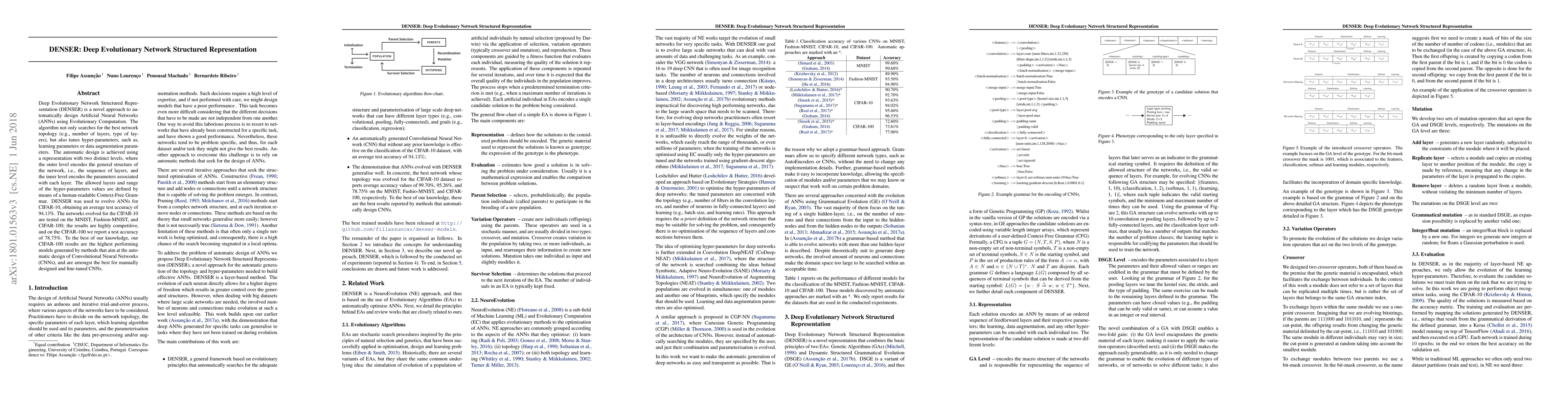 Deep Evolutionary Network Structured Representation (DENSER) is a novel approach to automatically design Artificial Neural Networks (ANNs) using Evolutionary Computation. The algorithm not only searches for the best network topology (e.g., number of layers, type of layers), but also tunes hyper-parameters, such as, learning parameters or data augmentation parameters. The automatic design is achieved using a representation with two distinct levels, where the outer level encodes the general structure of the network, i.e., the sequence of layers, and the inner level encodes the parameters associated with each layer. The allowed layers and range of the hyper-parameters values are defined by means of a human-readable Context-Free Grammar. DENSER was used to evolve ANNs for CIFAR-10, obtaining an average test accuracy of 94.13%. The networks evolved for the CIFA--10 are tested on the MNIST, Fashion-MNIST, and CIFAR-100; the results are highly competitive, and on the CIFAR-100 we report a test accuracy of 78.75%. To the best of our knowledge, our CIFAR-100 results are the highest performing models generated by methods that aim at the automatic design of Convolutional Neural Networks (CNNs), and are amongst the best for manually designed and fine-tuned CNNs.
