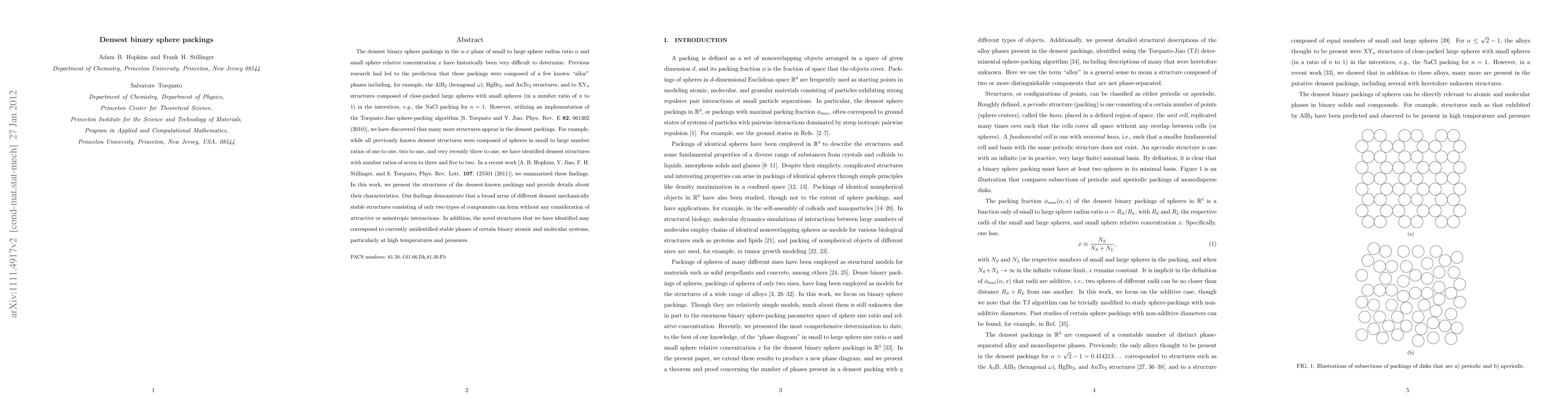 This research identifies new densest binary sphere packings using advanced algorithms, revealing structures with previously unknown sphere number ratios, such as seven to three and five to two. These findings suggest a wide variety of mechanically stable packings that could correspond to undiscovered stable phases in binary atomic and molecular systems.
