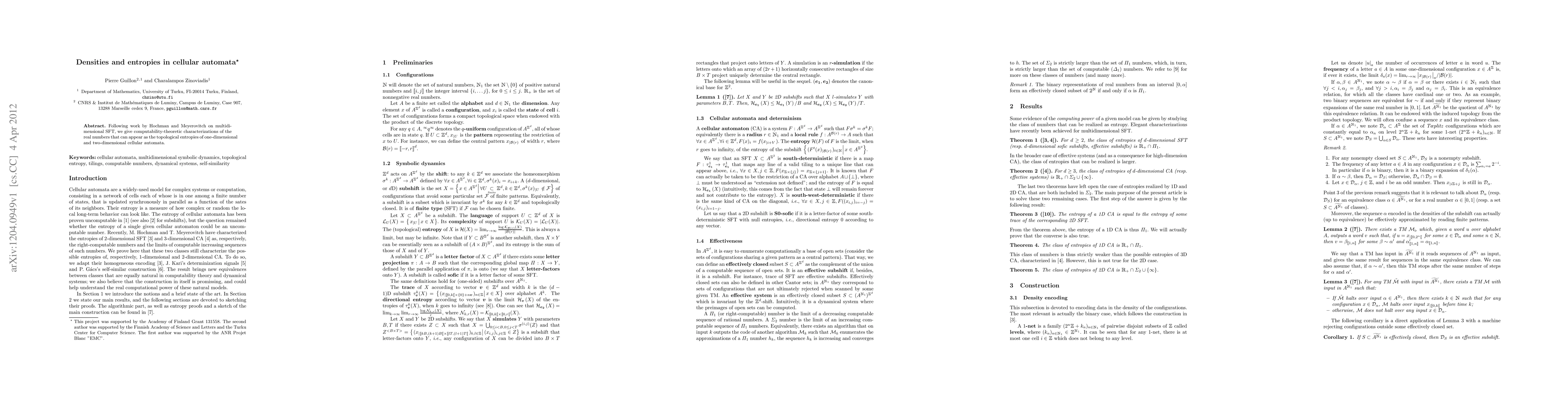 The paper introduces a self-similar construction method for south-deterministic SFTs, utilizing determinization widgets and generalized encoding of configurations into densities to characterize cellular automaton entropies in terms of computability classes.