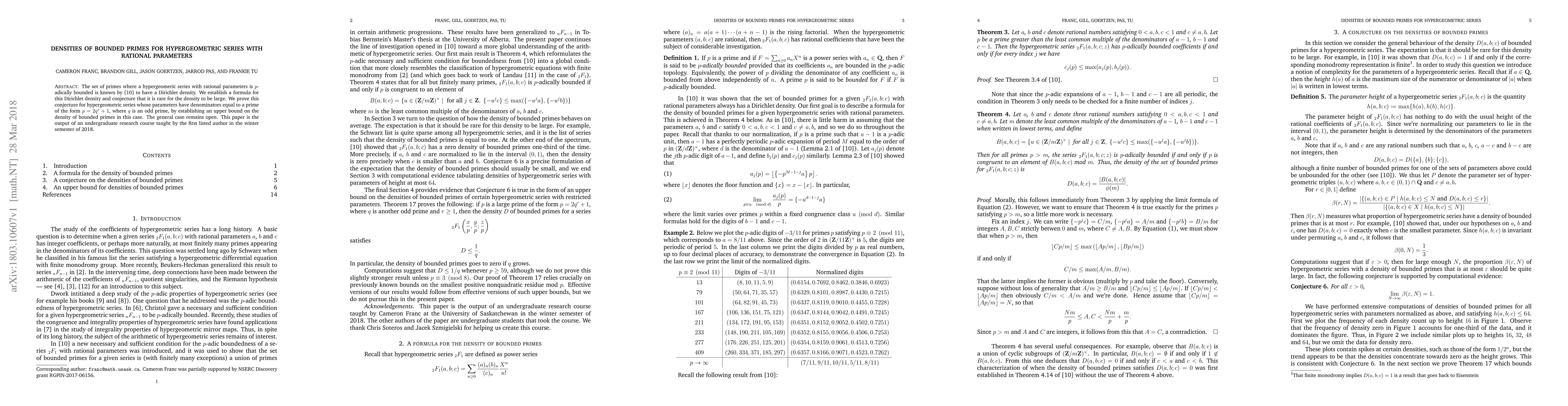 The set of primes where a hypergeomeric series with rational parameters is $p$-adically bounded is known by [10] to have a Dirichlet density. We establish a formula for this Dirichlet density and conjecture that it is rare for the density to be large. We prove this conjecture for hypergeometric series whose parameters have denominators equal to a prime of the form $p = 2q^r + 1$, where $q$ is an odd prime, by establishing an upper bound on the density of bounded primes in this case. The general case remains open. This paper is the output of an undergraduate research course taught by the first listed author in the winter semester of 2018.