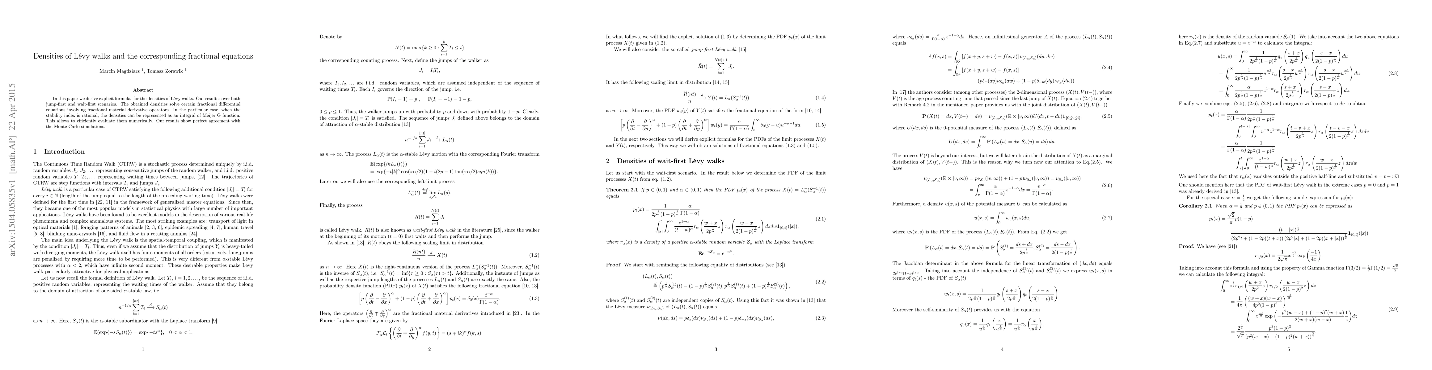 This paper derives explicit formulas for the densities of Lévy walks in both jump-first and wait-first scenarios, solving fractional differential equations with fractional material derivative operators. The densities can be represented as integrals of Meijer G functions for rational stability indices, facilitating efficient numerical evaluation and showing agreement with Monte Carlo simulations.