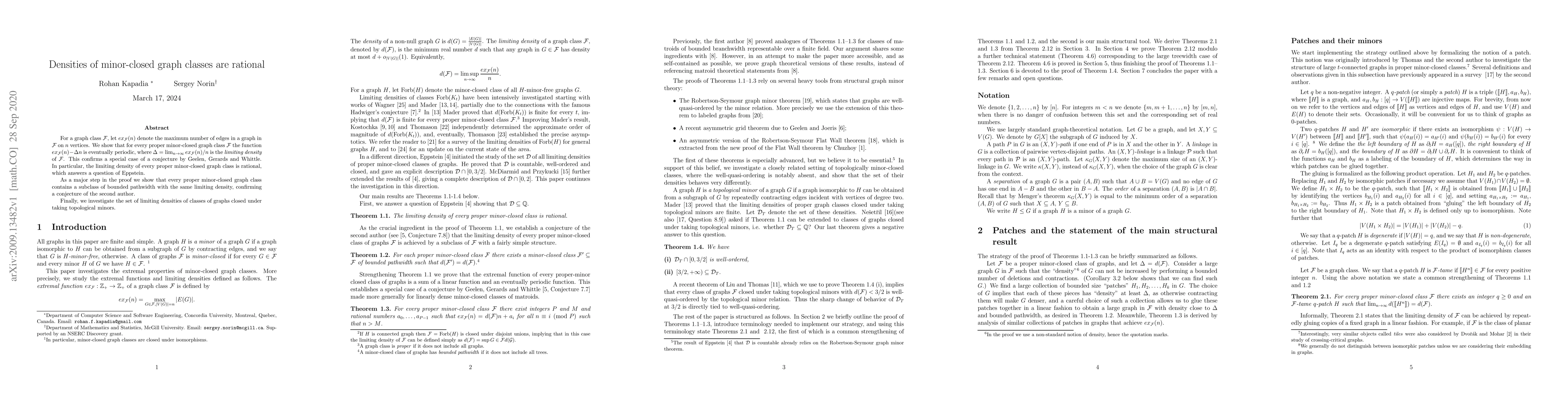 The paper proves that the limiting density of any proper minor-closed graph class is rational, confirming a conjecture by Geelen, Gerards, and Whittle. It also demonstrates that such graph classes contain subclasses with bounded pathwidth and the same limiting density.