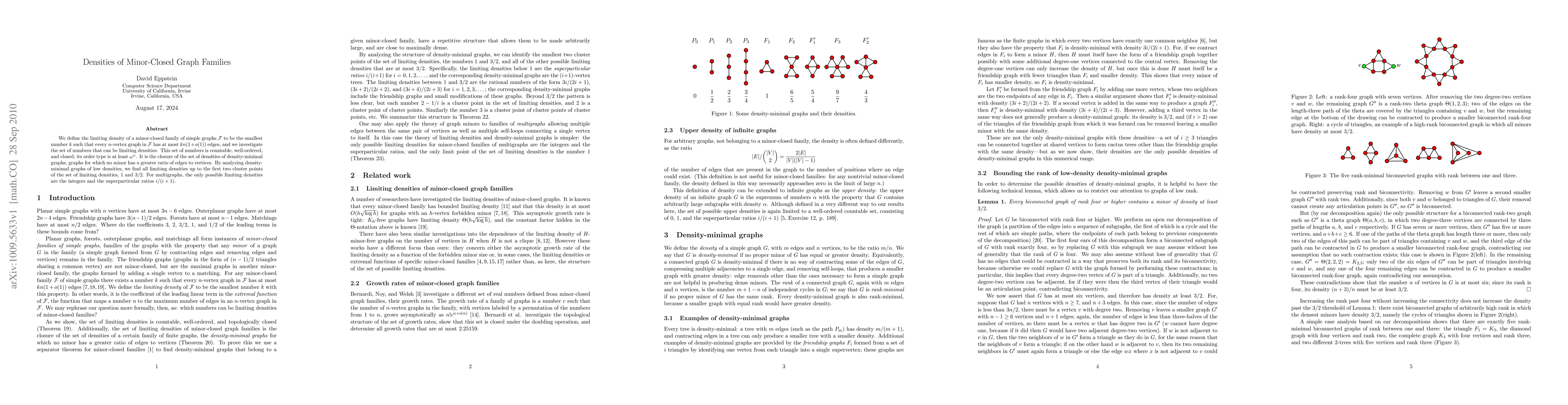 Understanding the structure of limiting densities of minor-closed graph families has implications for extremal graph theory, providing insights into the growth and properties of graph classes.