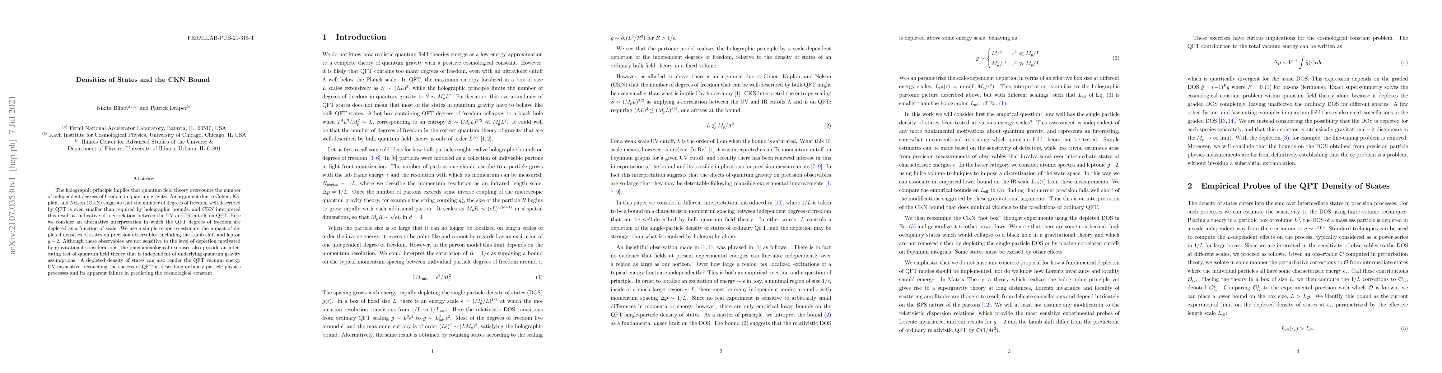 The holographic principle implies that quantum field theory overcounts the number of independent degrees of freedom in quantum gravity. An argument due to Cohen, Kaplan, and Nelson (CKN) suggests that the number of degrees of freedom well-described by QFT is even smaller than required by holographic bounds, and CKN interpreted this result as indicative of a correlation between the UV and IR cutoffs on QFT. Here we consider an alternative interpretation in which the QFT degrees of freedom are depleted as a function of scale. We use a simple recipe to estimate the impact of depleted densities of states on precision observables, including the Lamb shift and lepton $g-2$. Although these observables are not sensitive to the level of depletion motivated by gravitational considerations, the phenomenological exercises also provide an interesting test of quantum field theory that is independent of underlying quantum gravity assumptions. A depleted density of states can also render the QFT vacuum energy UV-insensitive, reconciling the success of QFT in describing ordinary particle physics processes and its apparent failure in predicting the cosmological constant.