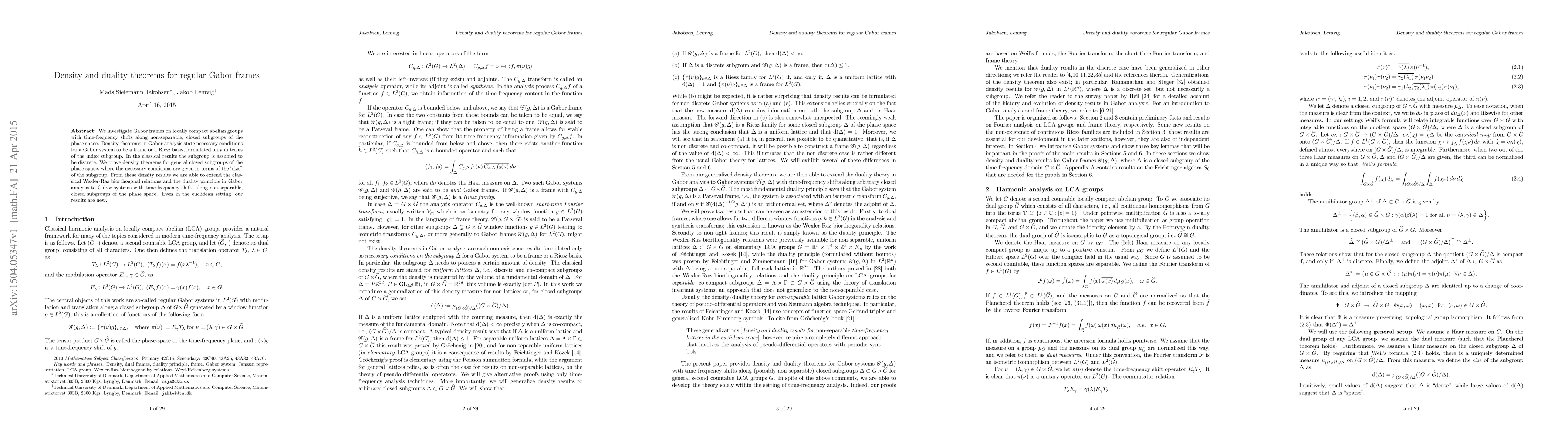 This paper proves density theorems for Gabor frames on locally compact abelian groups with shifts along non-separable, closed subgroups, extending classical results to more general settings. It also extends the duality principle and biorthogonal relations to these broader contexts.