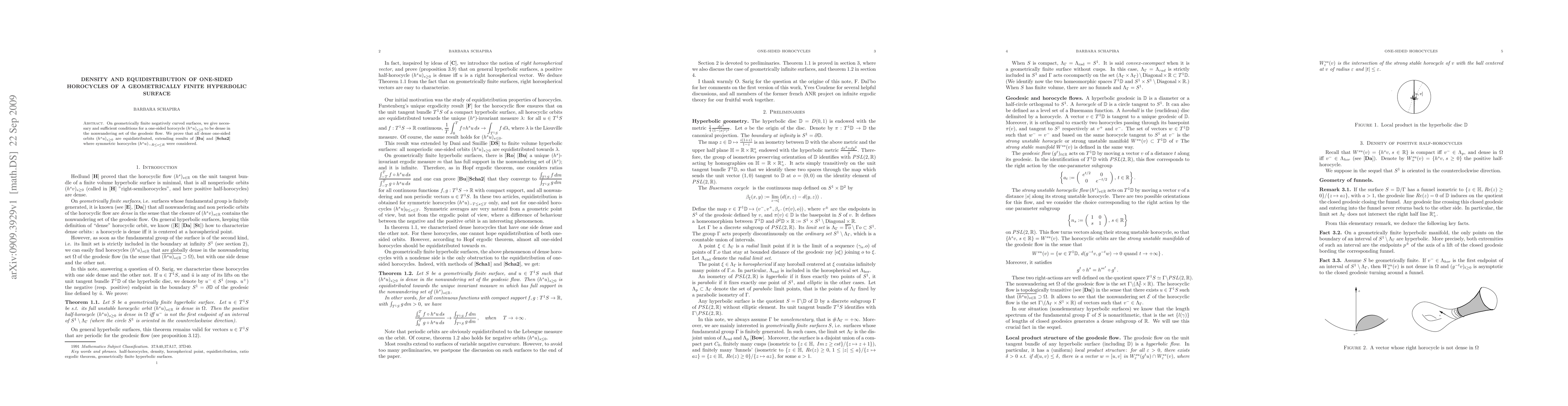 This paper provides necessary and sufficient conditions for one-sided horocycles on geometrically finite negatively curved surfaces to be dense in the nonwandering set of the geodesic flow. It further proves that all such dense one-sided orbits are equidistributed, extending previous results on symmetric horocycles.
