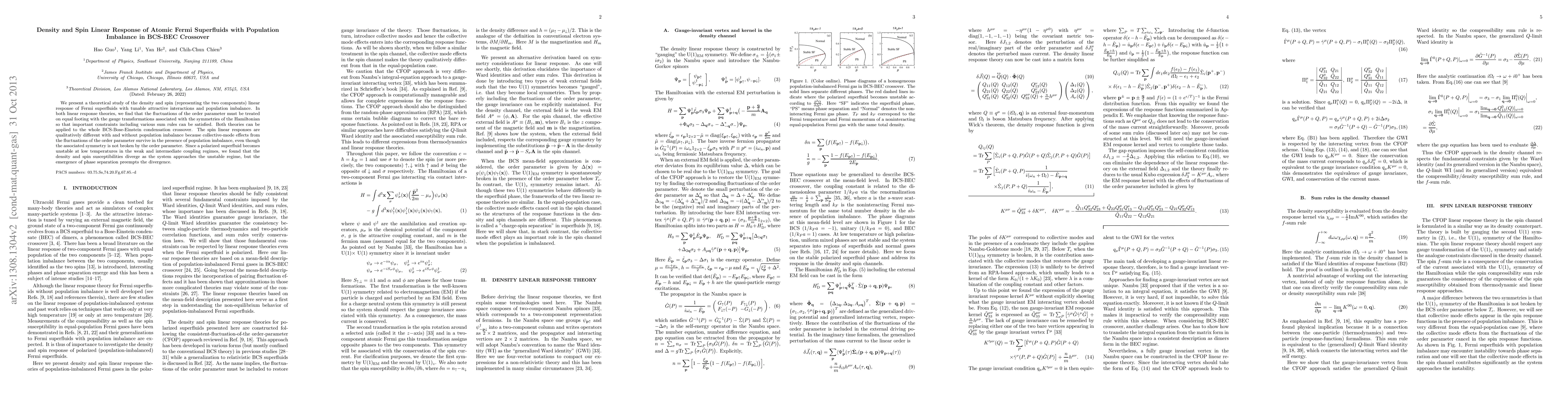 This paper theoretically investigates the density and spin linear response of Fermi superfluids with tunable interactions and population imbalance across the BCS-BEC crossover. The study finds that collective-mode effects persist with population imbalance, leading to divergent density and spin susceptibilities near instability, which are prevented by phase separation.