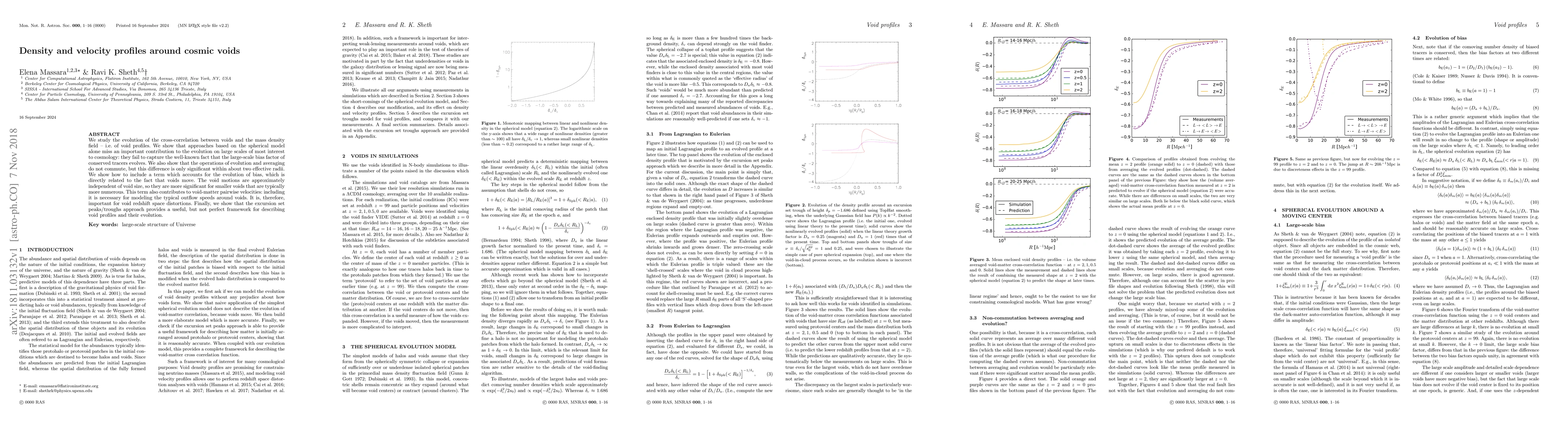 This paper investigates the evolution of cosmic voids and their cross-correlation with mass density, highlighting the importance of accounting for the evolution of the large-scale bias factor. It emphasizes the necessity of including void motion effects to accurately model the outflow speeds and redshift space distortions around voids.