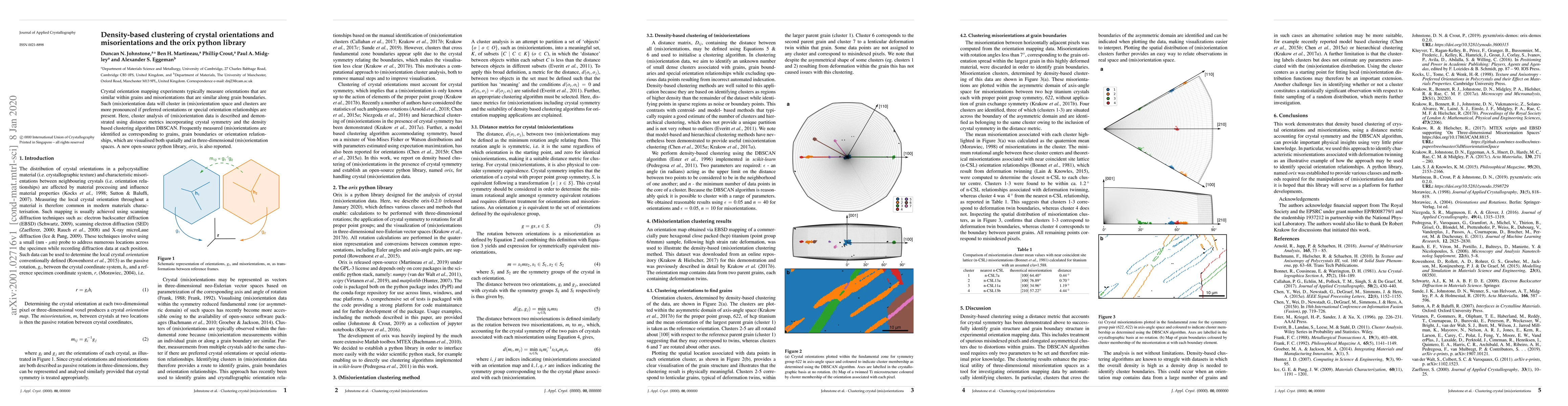 This paper presents a method for clustering crystal orientations and misorientations using density-based clustering and the open-source Python library orix, which identifies and visualizes grains, grain boundaries, and orientation relationships in crystal orientation mapping experiments.