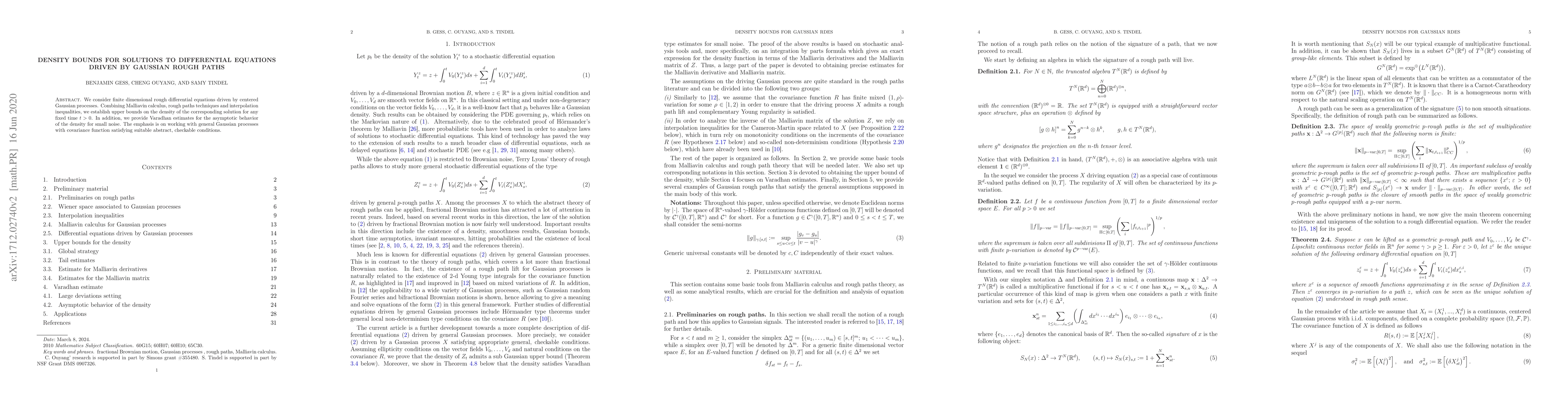 This paper establishes upper density bounds for solutions to finite-dimensional rough differential equations driven by centered Gaussian processes, leveraging Malliavin calculus and rough paths techniques. It also provides Varadhan estimates for the asymptotic density behavior under small noise conditions.