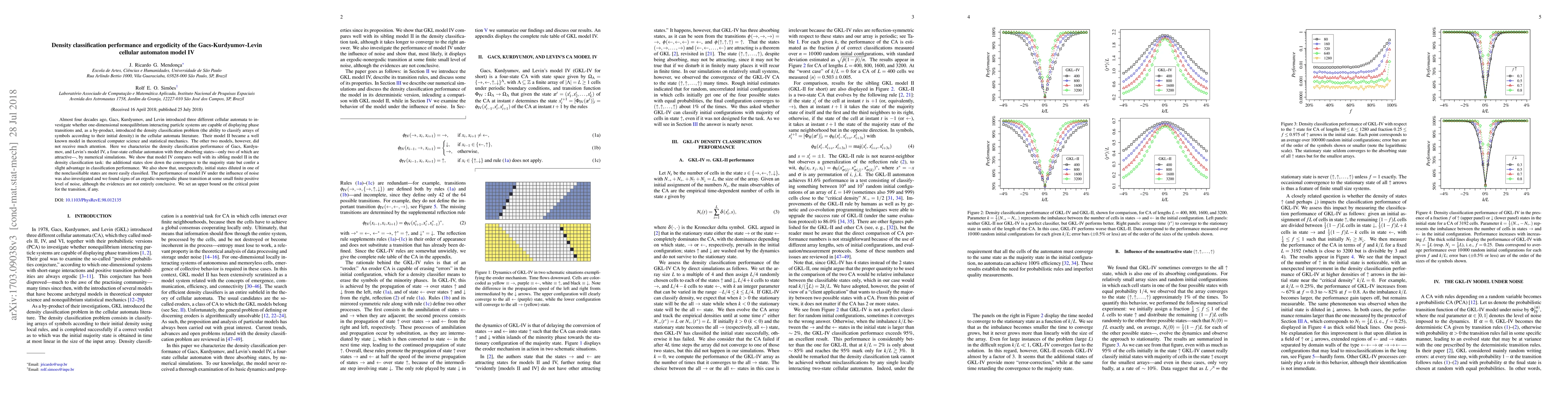 Almost four decades ago, Gacs, Kurdyumov, and Levin introduced three different cellular automata to investigate whether one-dimensional nonequilibrium interacting particle systems are capable of displaying phase transitions and, as a by-product, introduced the density classification problem (the ability to classify arrays of symbols according to their initial density) in the cellular automata literature. Their model II became a well known model in theoretical computer science and statistical mechanics. The other two models, however, did not receive much attention. Here we characterize the density classification performance of Gacs, Kurdyumov, and Levin's model IV, a four-state cellular automaton with three absorbing states---only two of which are attractive---, by numerical simulations. We show that model IV compares well with its sibling model II in the density classification task: the additional states slow down the convergence to the majority state but confer a slight advantage in classification performance. We also show that, unexpectedly, initial states diluted in one of the nonclassifiable states are more easily classified. The performance of model IV under the influence of noise was also investigated and we found signs of an ergodic-nonergodic phase transition at some small finite positive level of noise, although the evidences are not entirely conclusive. We set an upper bound on the critical point for the transition, if any.