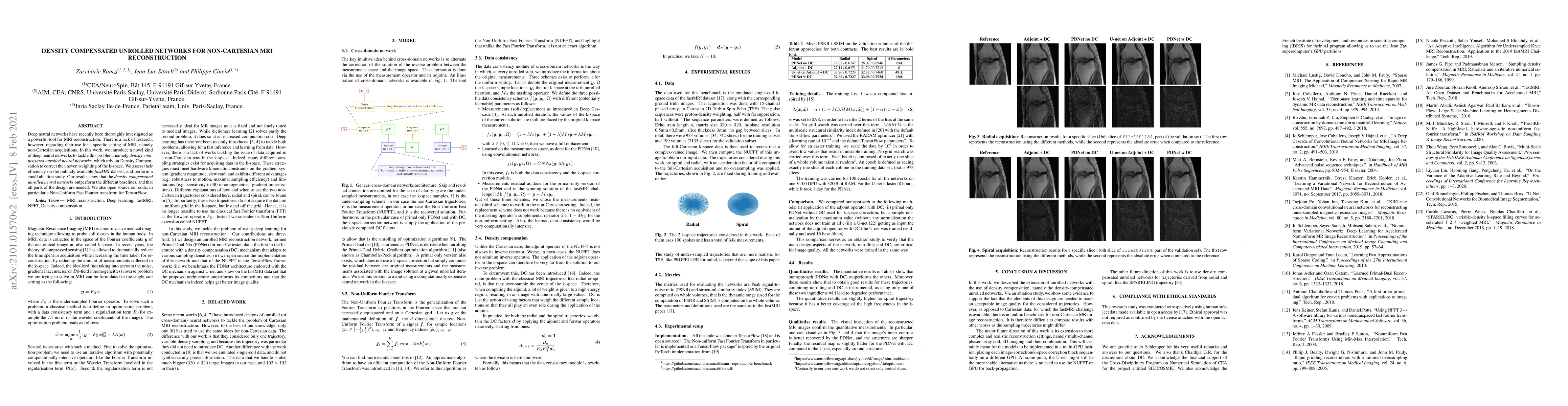 This paper introduces density compensated unrolled neural networks for reconstructing MRI images from non-Cartesian acquisitions, showing improved performance over baselines on the fastMRI dataset. The study highlights the necessity of all design components and releases the code, including a Non-Uniform Fast Fourier transform for TensorFlow.