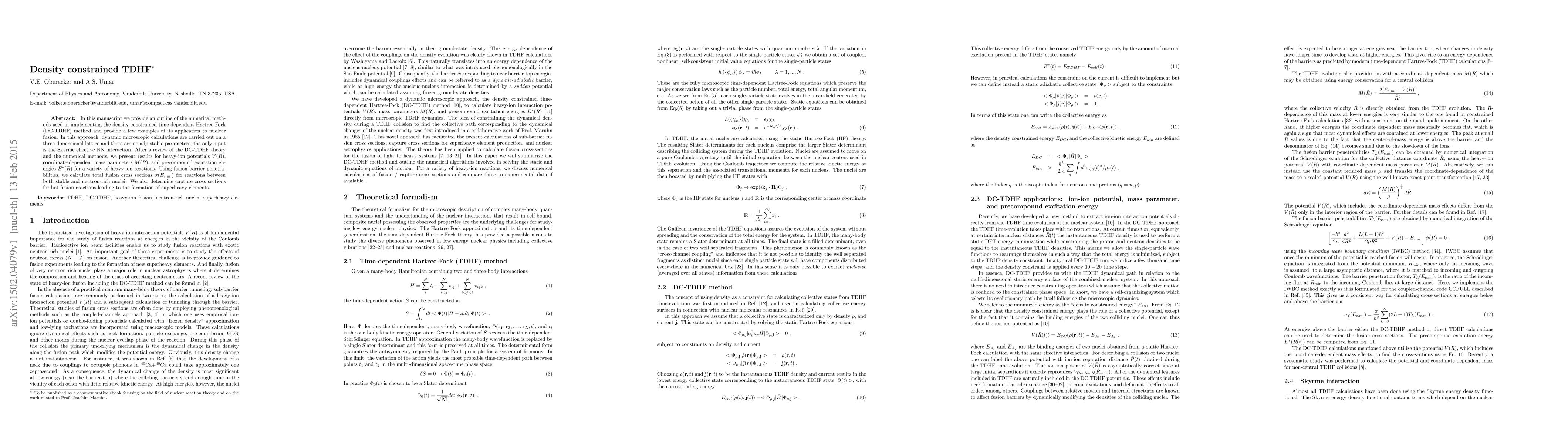In this manuscript we provide an outline of the numerical methods used in implementing the density constrained time-dependent Hartree-Fock (DC-TDHF) method and provide a few examples of its application to nuclear fusion. In this approach, dynamic microscopic calculations are carried out on a three-dimensional lattice and there are no adjustable parameters, the only input is the Skyrme effective NN interaction. After a review of the DC-TDHF theory and the numerical methods, we present results for heavy-ion potentials $V(R)$, coordinate-dependent mass parameters $M(R)$, and precompound excitation energies $E^{*}(R)$ for a variety of heavy-ion reactions. Using fusion barrier penetrabilities, we calculate total fusion cross sections $\sigma(E_\mathrm{c.m.})$ for reactions between both stable and neutron-rich nuclei. We also determine capture cross sections for hot fusion reactions leading to the formation of superheavy elements.