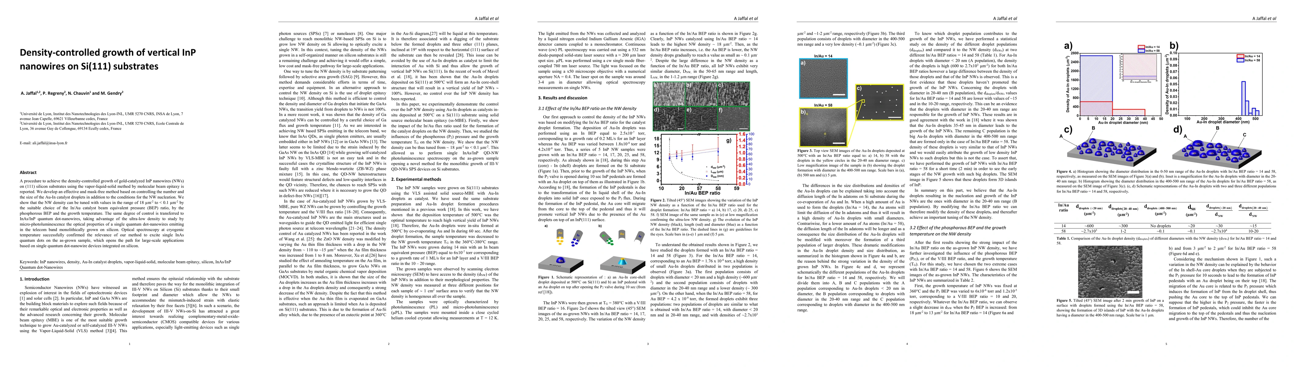 This paper reports a method for density-controlled growth of InP nanowires on Si(111) substrates using the vapor-liquid-solid method via molecular beam epitaxy, achieving densities from 18 to < 0.1 μm-2. The technique allows for the study of single quantum dot-nanowires' optical properties, paving the way for large-scale integration of quantum dot-nanowire devices on silicon.