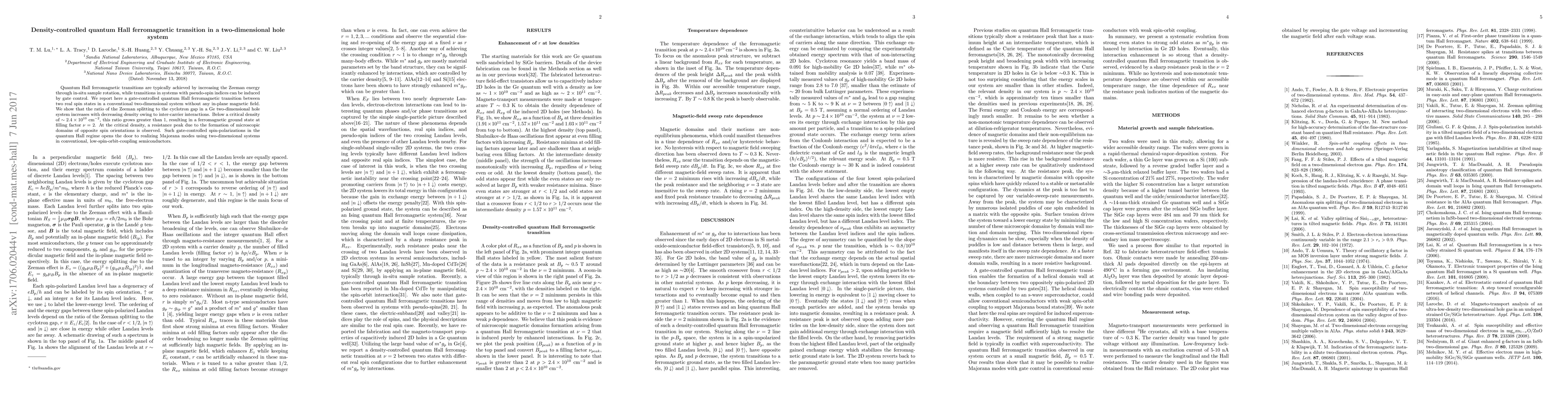 This study demonstrates a gate-controlled quantum Hall ferromagnetic transition in a two-dimensional hole system, showing that decreasing carrier density leads to a spin-polarized ferromagnetic state at a filling factor of 2, facilitated by inter-carrier interactions. The transition is marked by a resistance peak indicating microscopic domain formation.