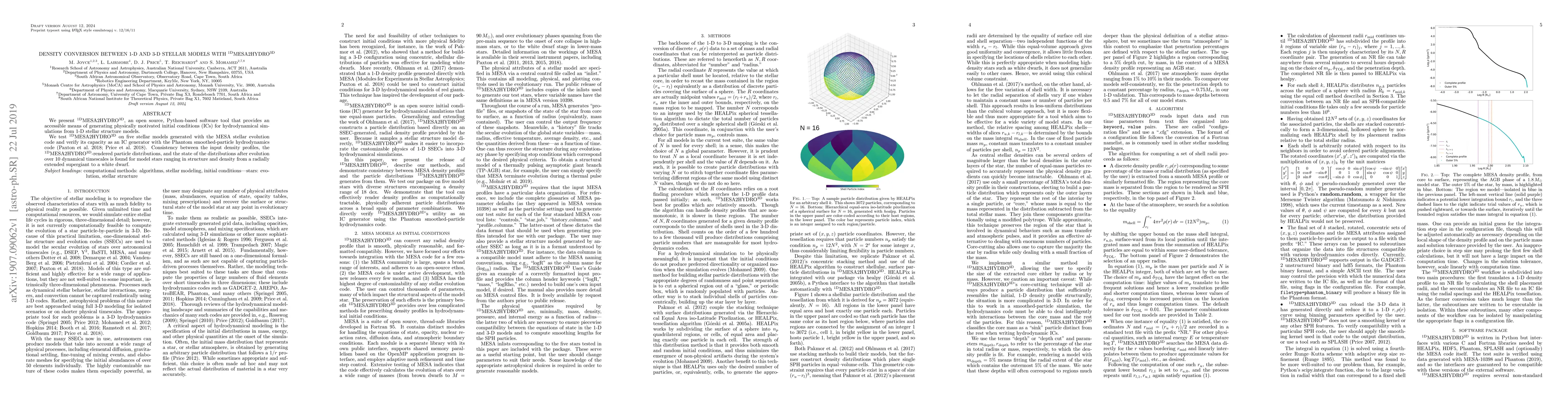 A new software tool, 1D-MESA2HYDRO-3D, generates initial conditions for hydrodynamical simulations from 1-D stellar models, with consistent results across five different star models.