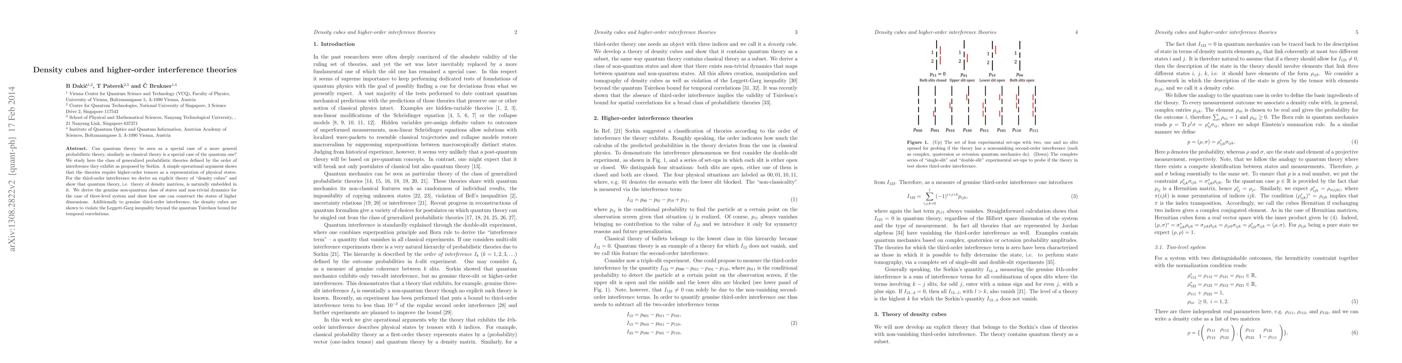 Can quantum theory be seen as a special case of a more general probabilistic theory, similarly as classical theory is a special case of the quantum one? We study here the class of generalized probabilistic theories defined by the order of interference they exhibit as proposed by Sorkin. A simple operational argument shows that the theories require higher-order tensors as a representation of physical states. For the third-order interference we derive an explicit theory of "density cubes" and show that quantum theory, i.e. theory of density matrices, is naturally embedded in it. We derive the genuine non-quantum class of states and non-trivial dynamics for the case of three-level system and show how one can construct the states of higher dimensions. Additionally to genuine third-order interference, the density cubes are shown to violate the Leggett-Garg inequality beyond the quantum Tsirelson bound for temporal correlations.
