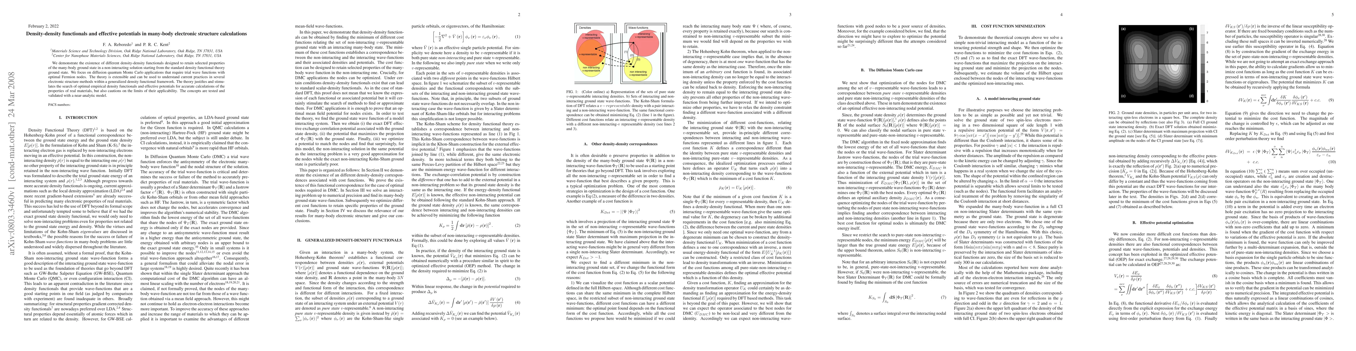 This paper introduces various density-density functionals to retain specific properties of the many-body ground state in non-interacting systems, extending the standard density functional theory. It validates these concepts with a near-analytic model and discusses their applicability in electronic structure calculations, particularly in diffusion quantum Monte Carlo methods.